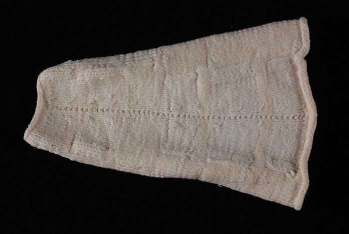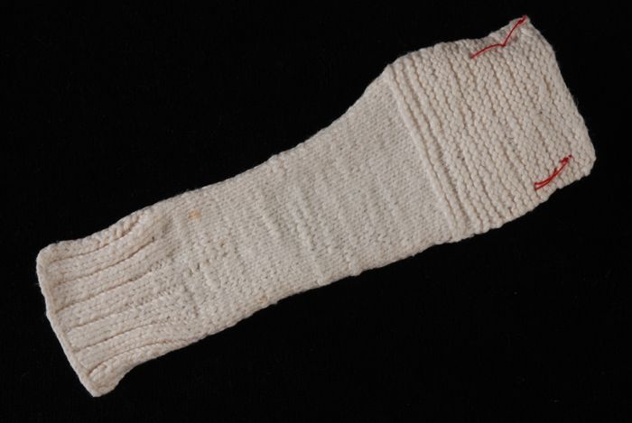 Wit katoenen gebreide kous met rode stoppen, oefenha...