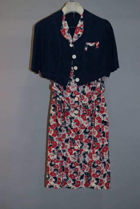 Blauw/rood/wit gebloemde zomerjapon met blauwe bolero