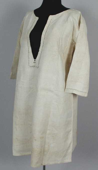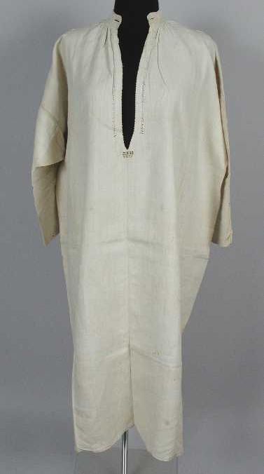 Hemd van wit linnen, ronde hals, opstaand boord en l...