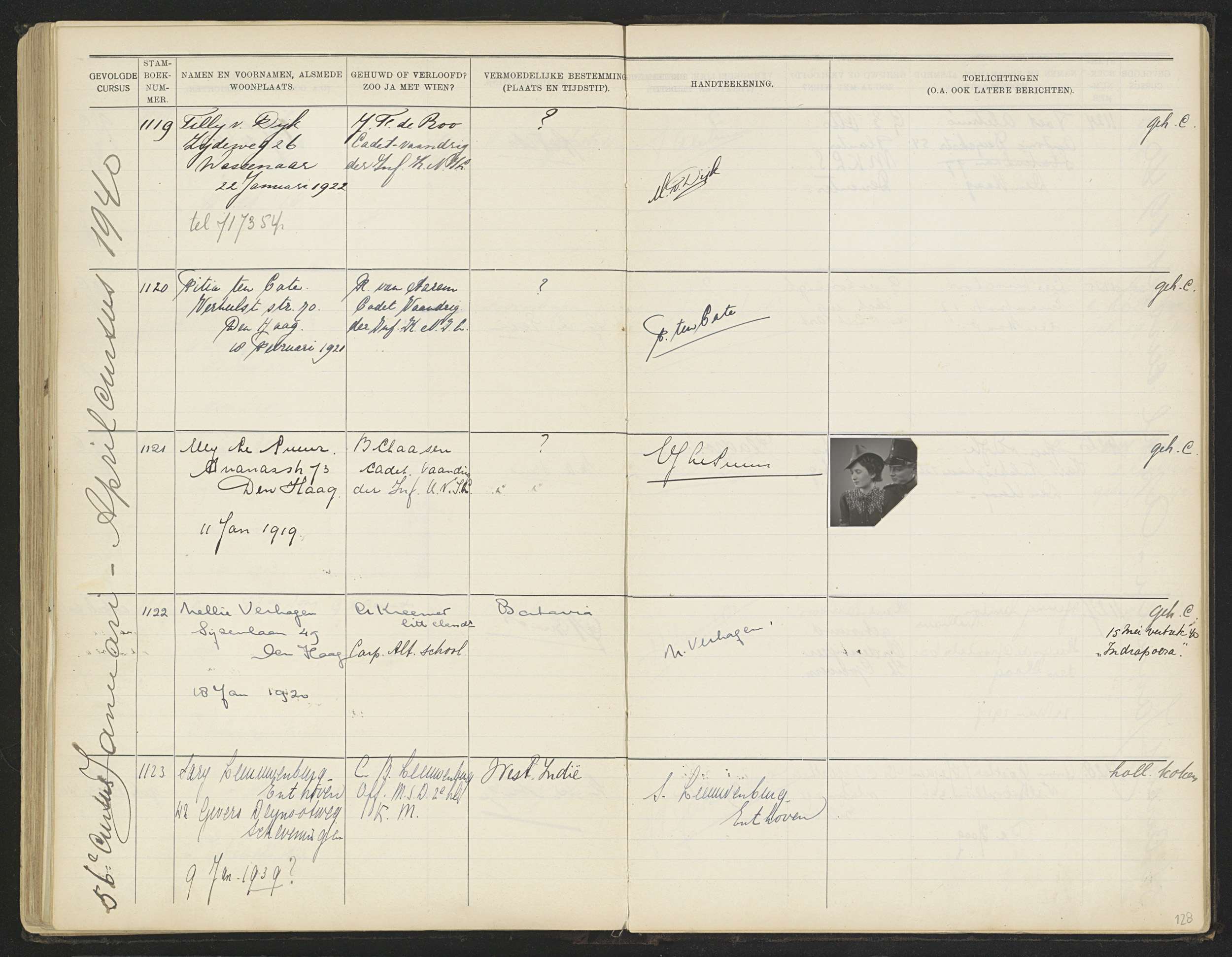 Blad 128 uit Stamboek van de leerlingen der Kolonial...