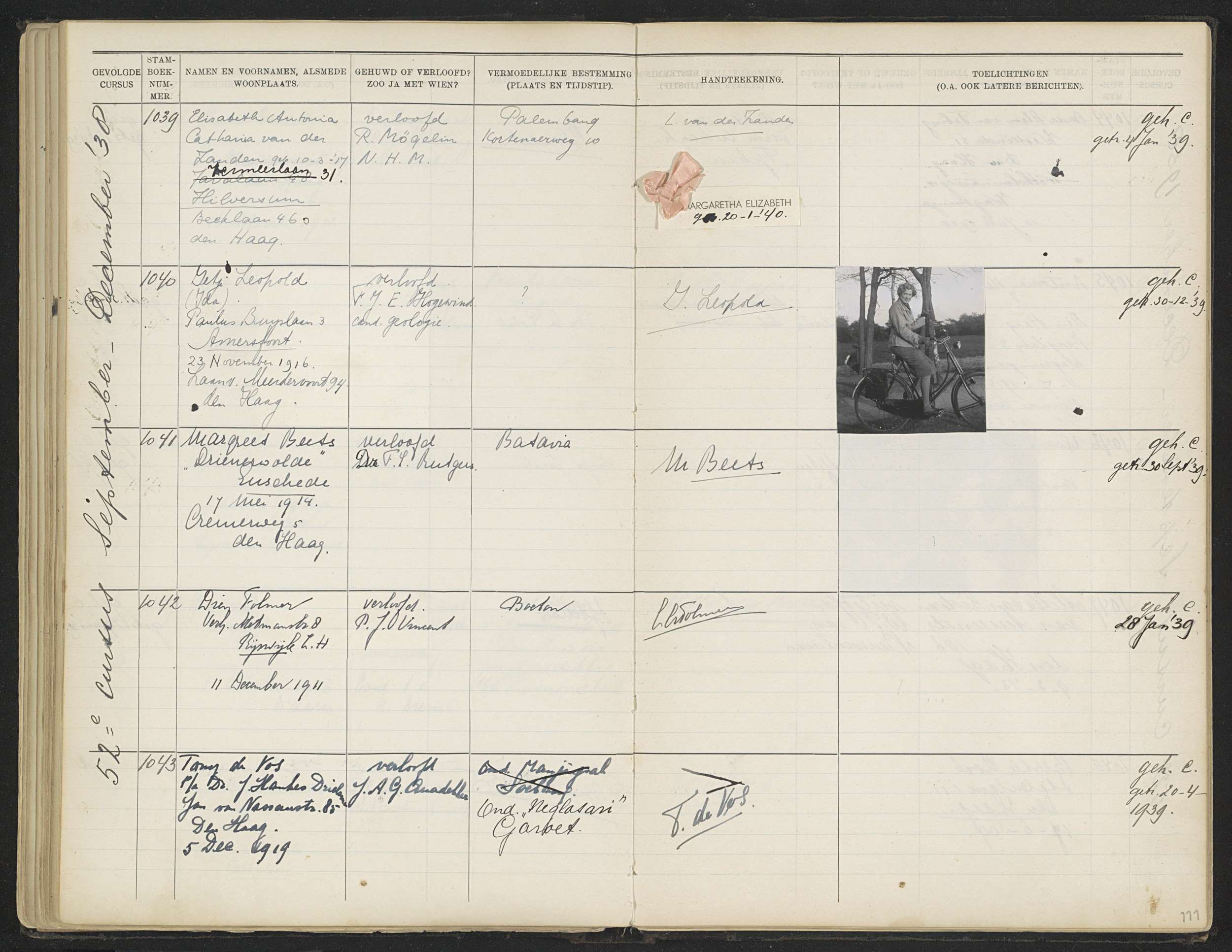 Blad 111 uit Stamboek van de leerlingen der Kolonial...