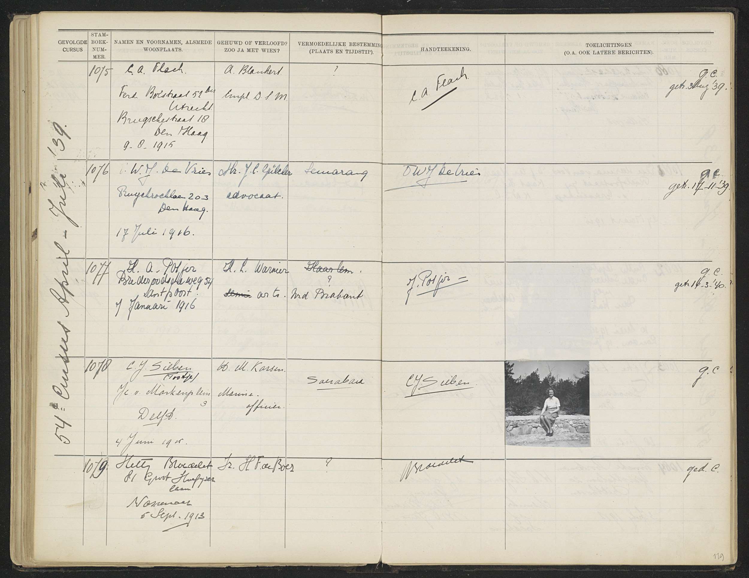 Blad 110 uit Stamboek van de leerlingen der Kolonial...