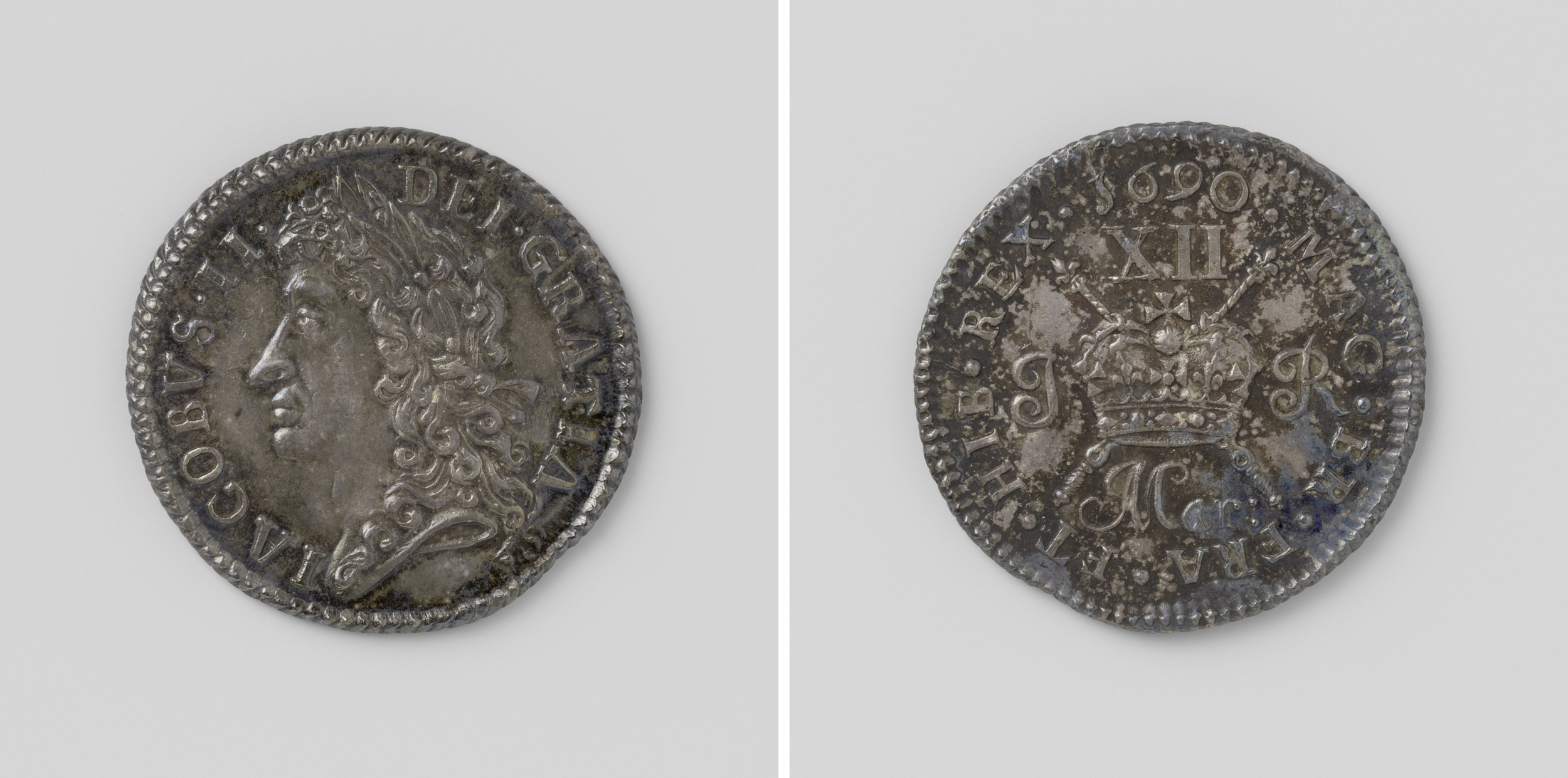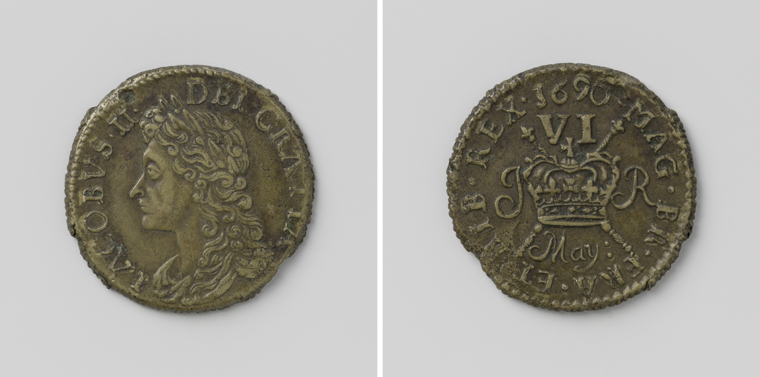 Zes pence, noodmunt van Jacobus II, koning van Engel...