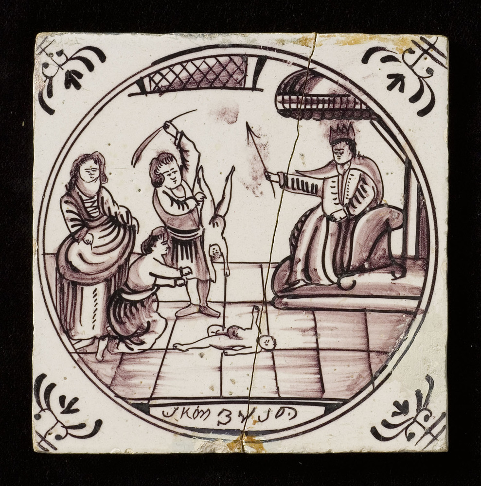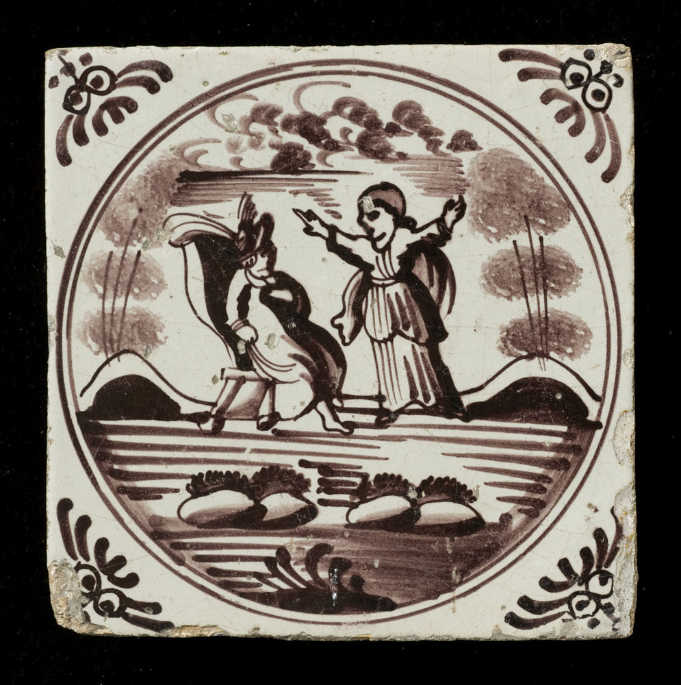 Tegel van keramiek met tinglazuur, voorstellende: Je...