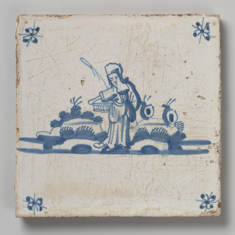 tegel van aardewerk met tinglazuur, voorstellende: h...