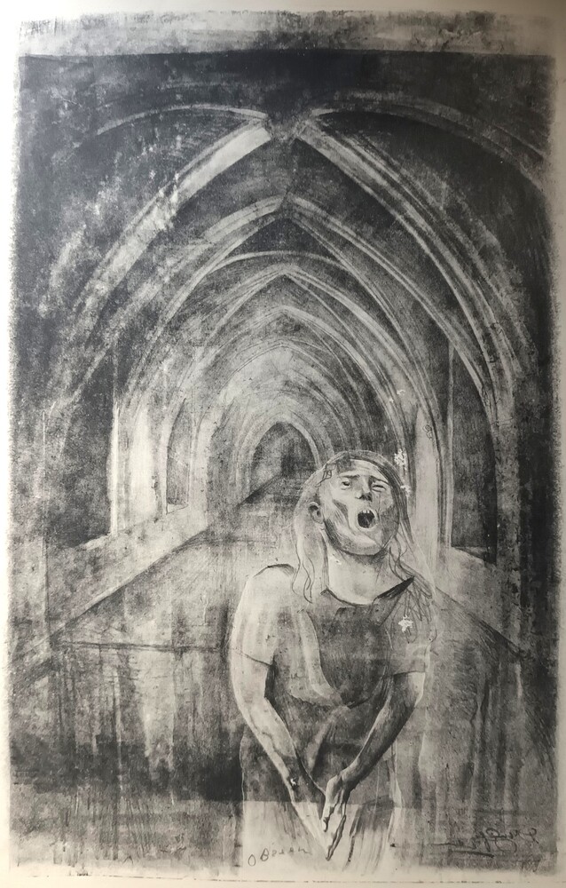 Smekende vrouw in gewelfde gang
