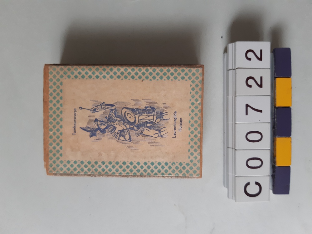 Lucifersdoos met één lucifer. Met opschrift Tambourc...