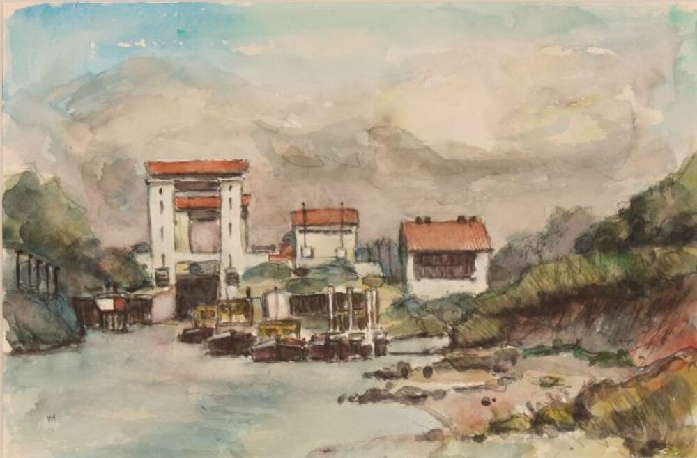 Schoolplaat op karton: Scheepswerf aan de Nieuwe Maa...