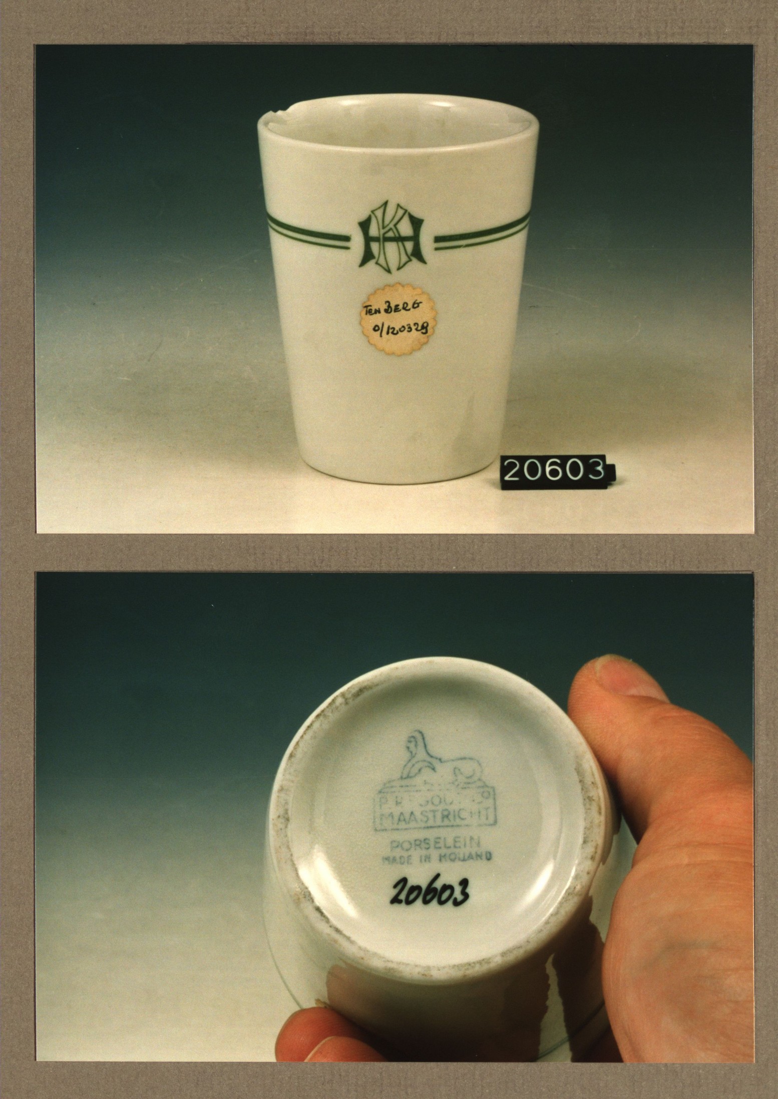 Beker met opschrift, model G met decor HK