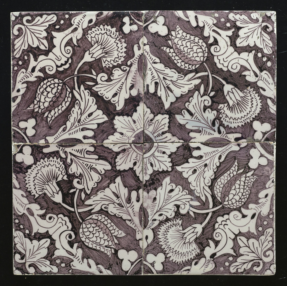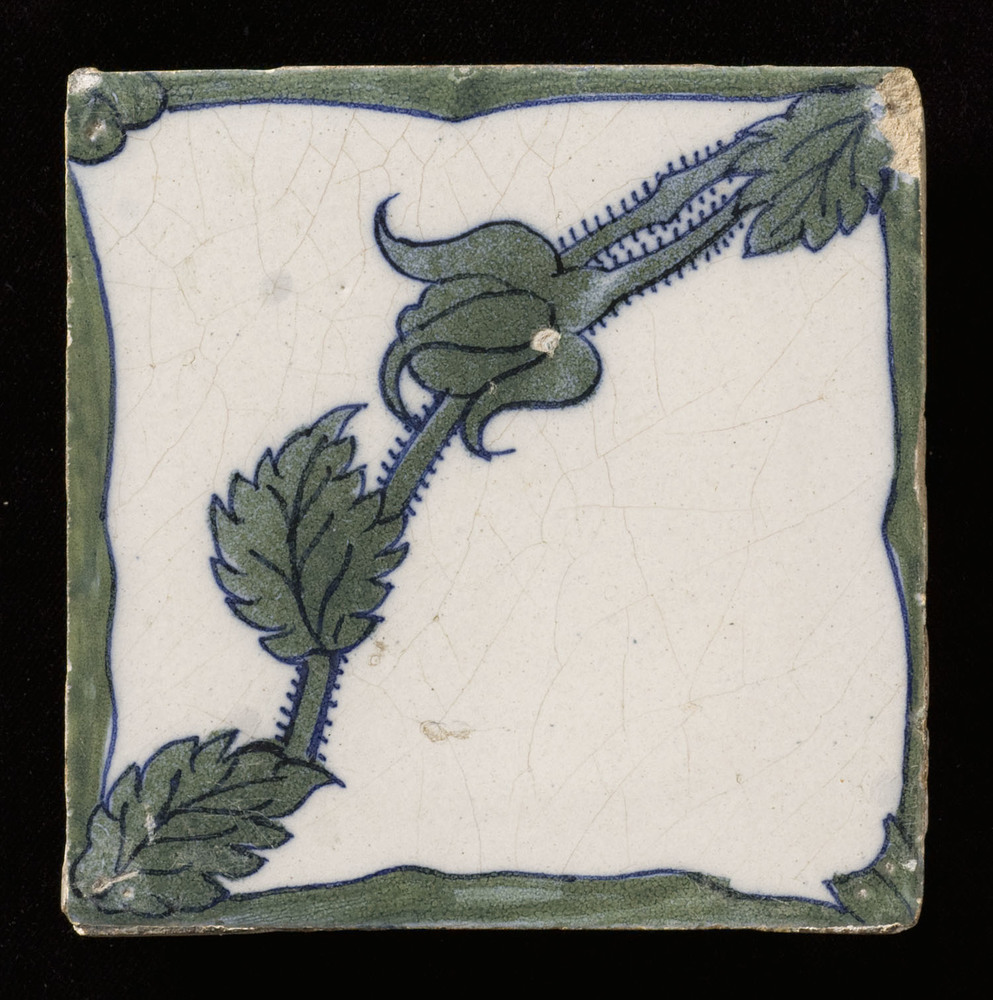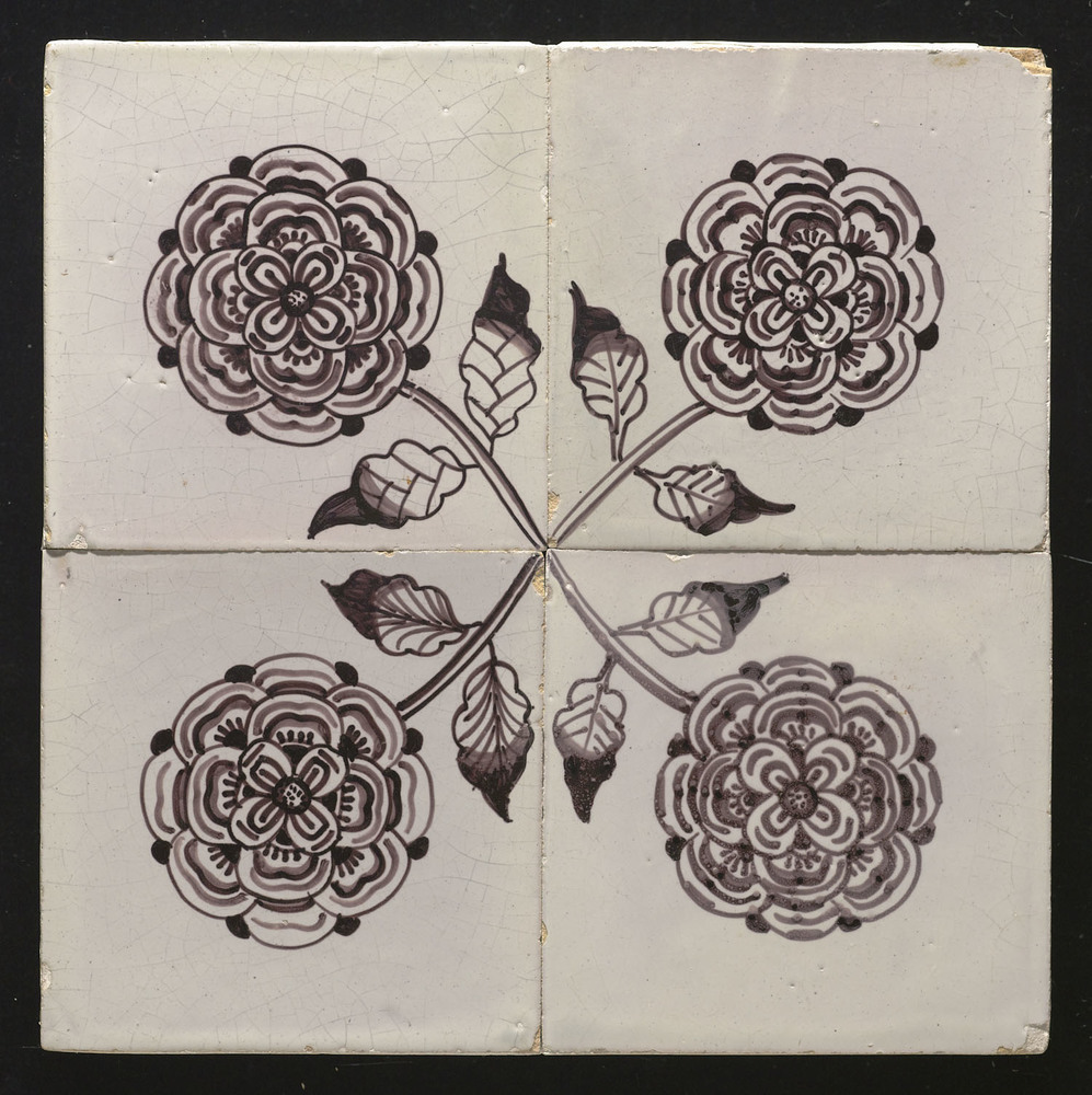 Tegel van keramiek, tinglazuur, voorstellende orname...
