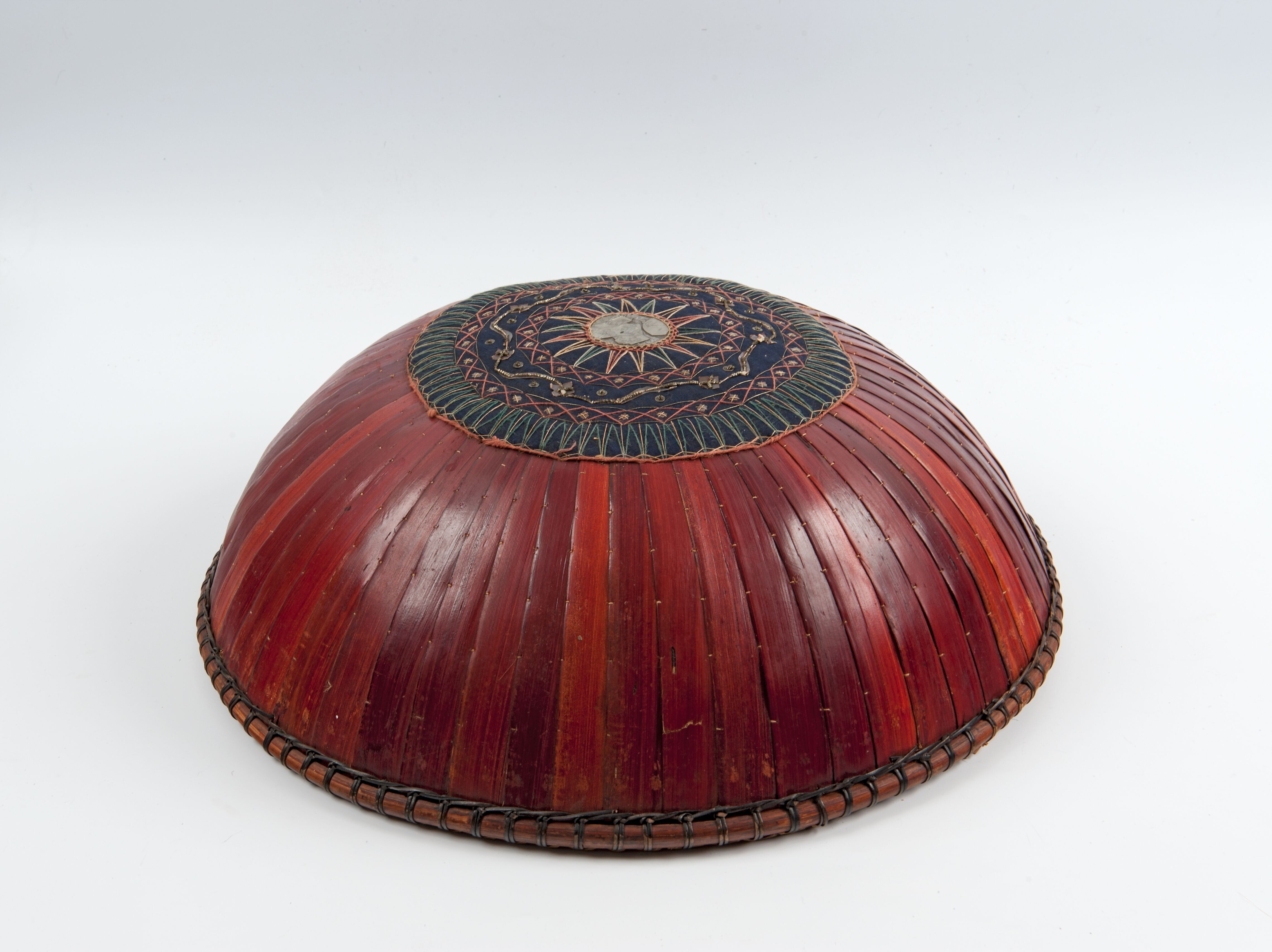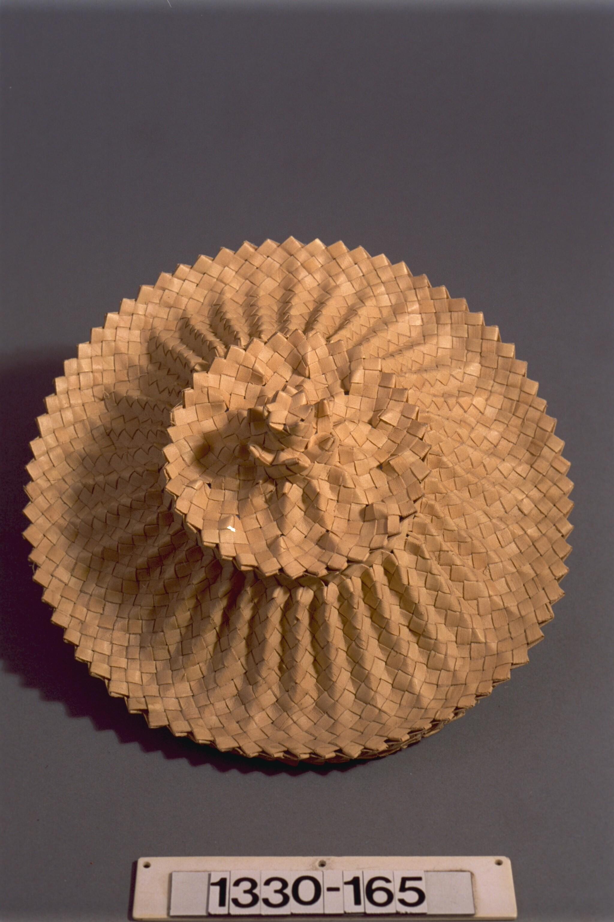 Spijsdeksel van aaneen genaaide palmbladrepen