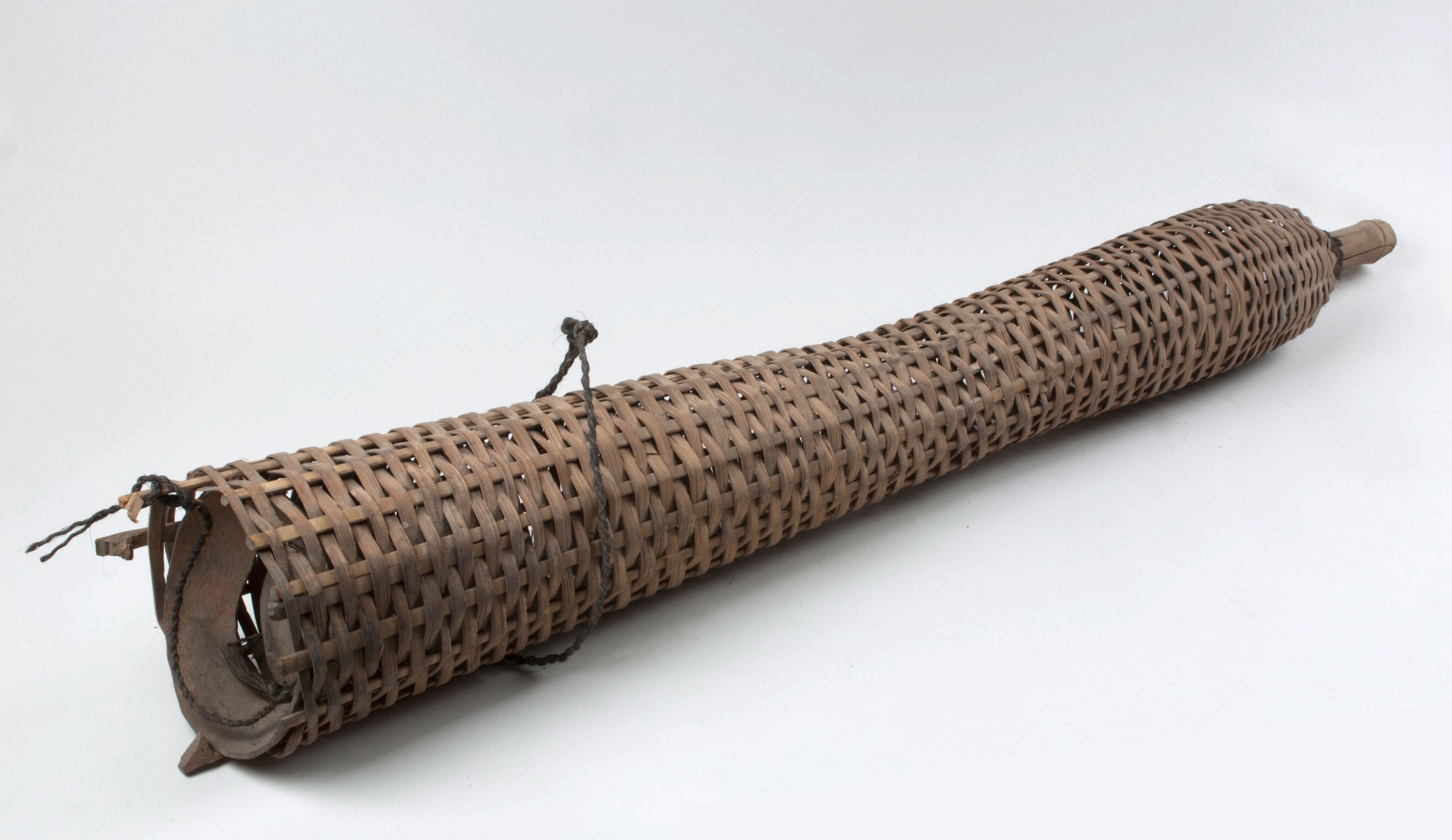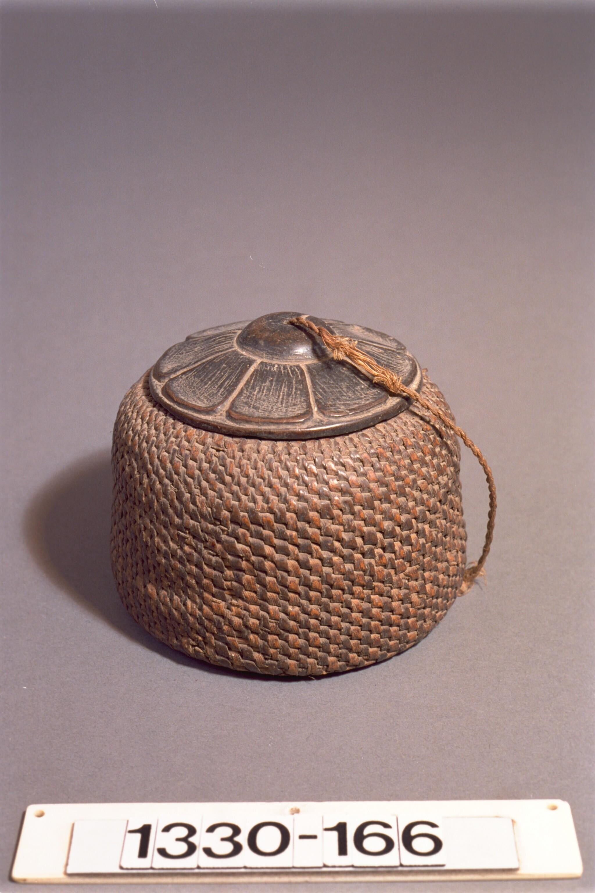 Koker van gevlochten rotan voor tabak of kalk