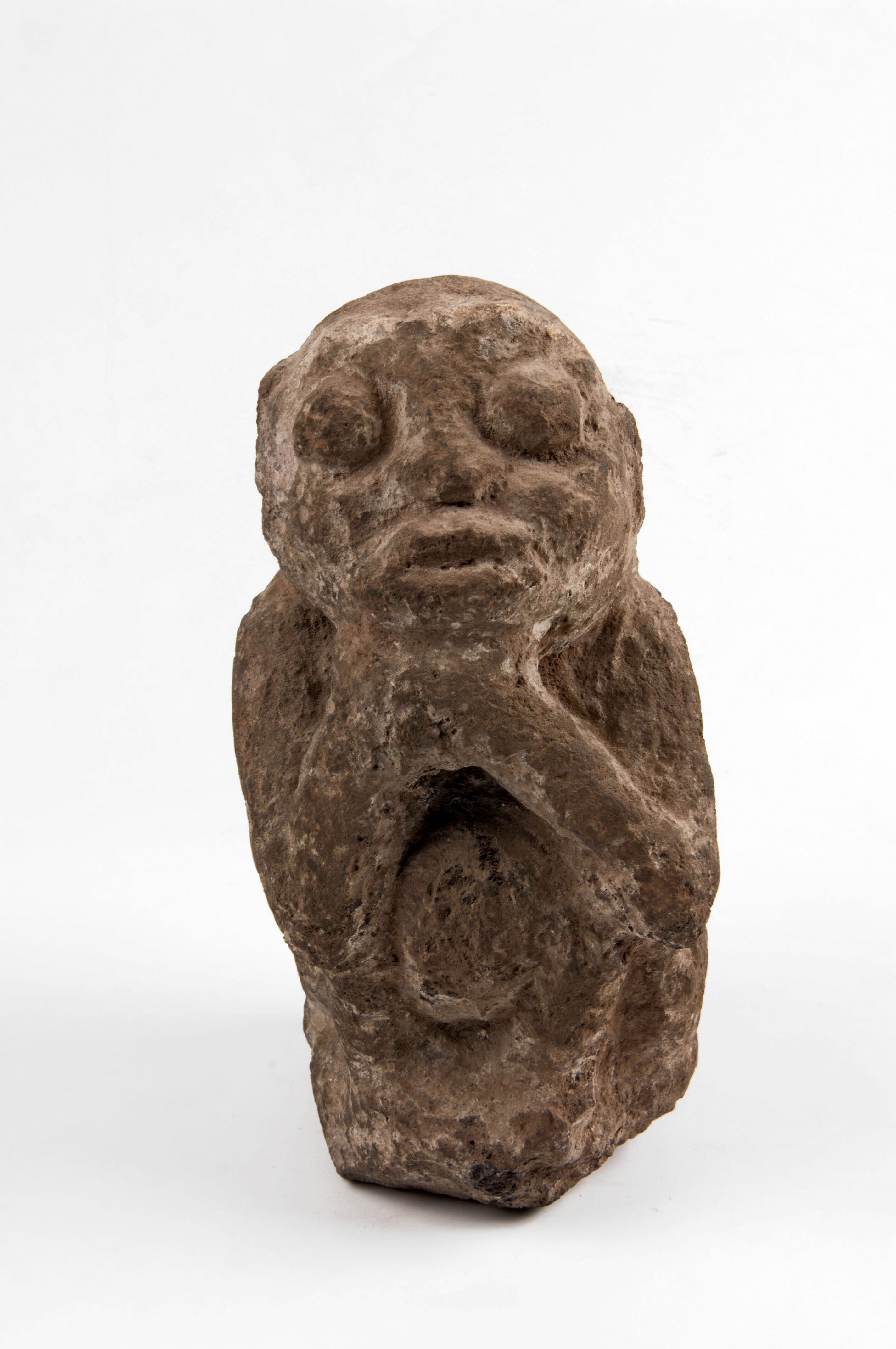 Tufstenen beeld van een zittende figuur