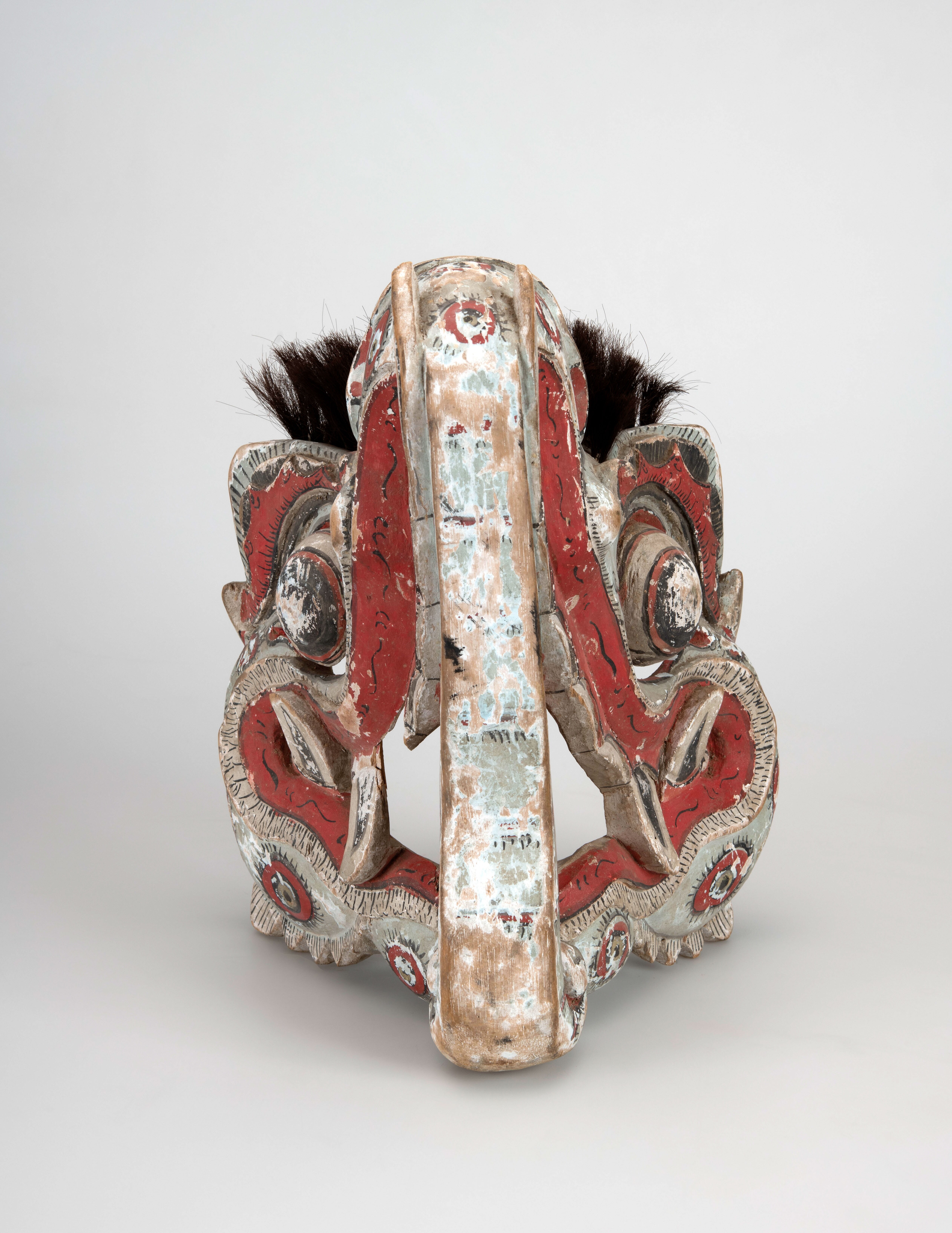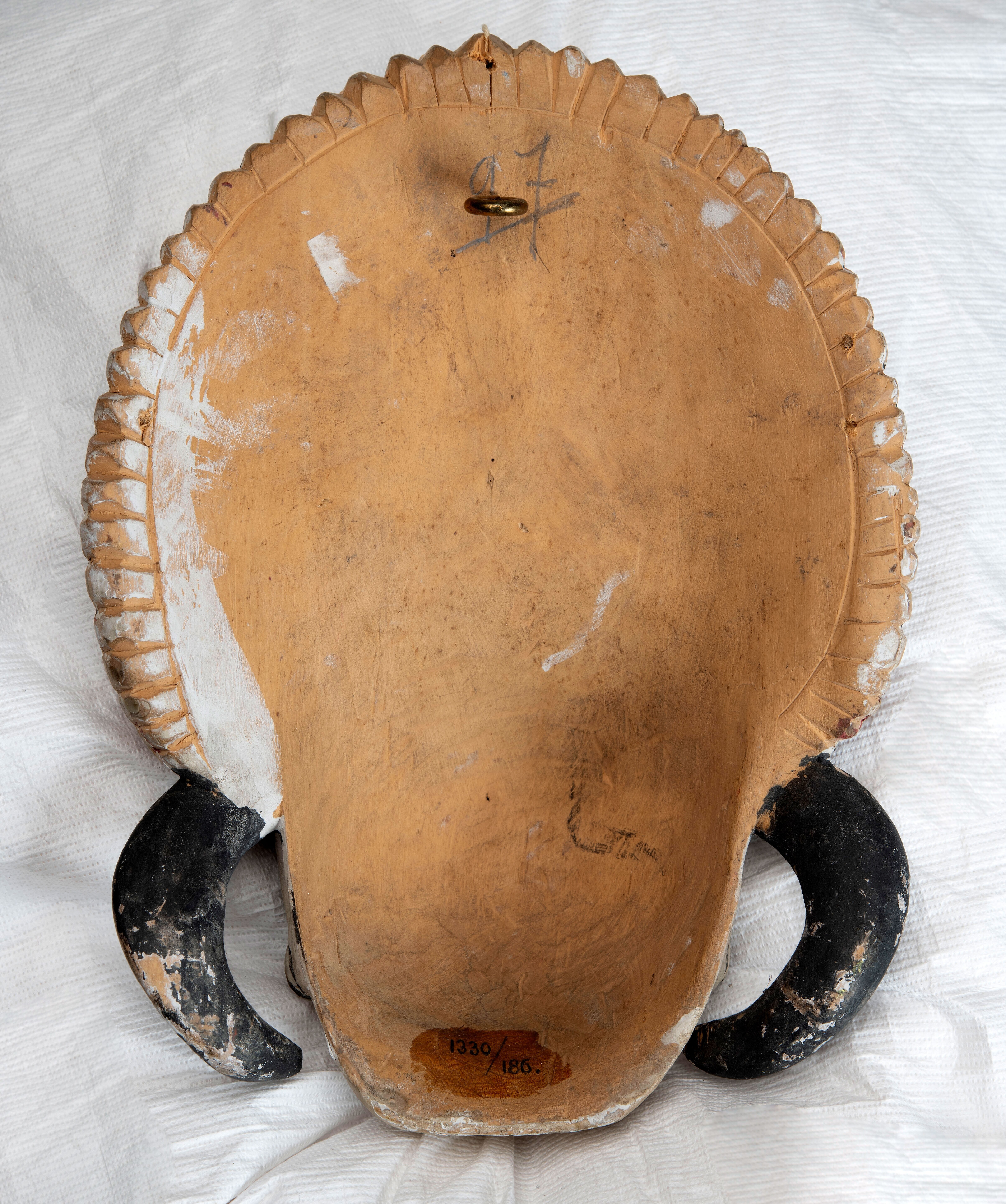 Houten masker voorstellende een witte olifant