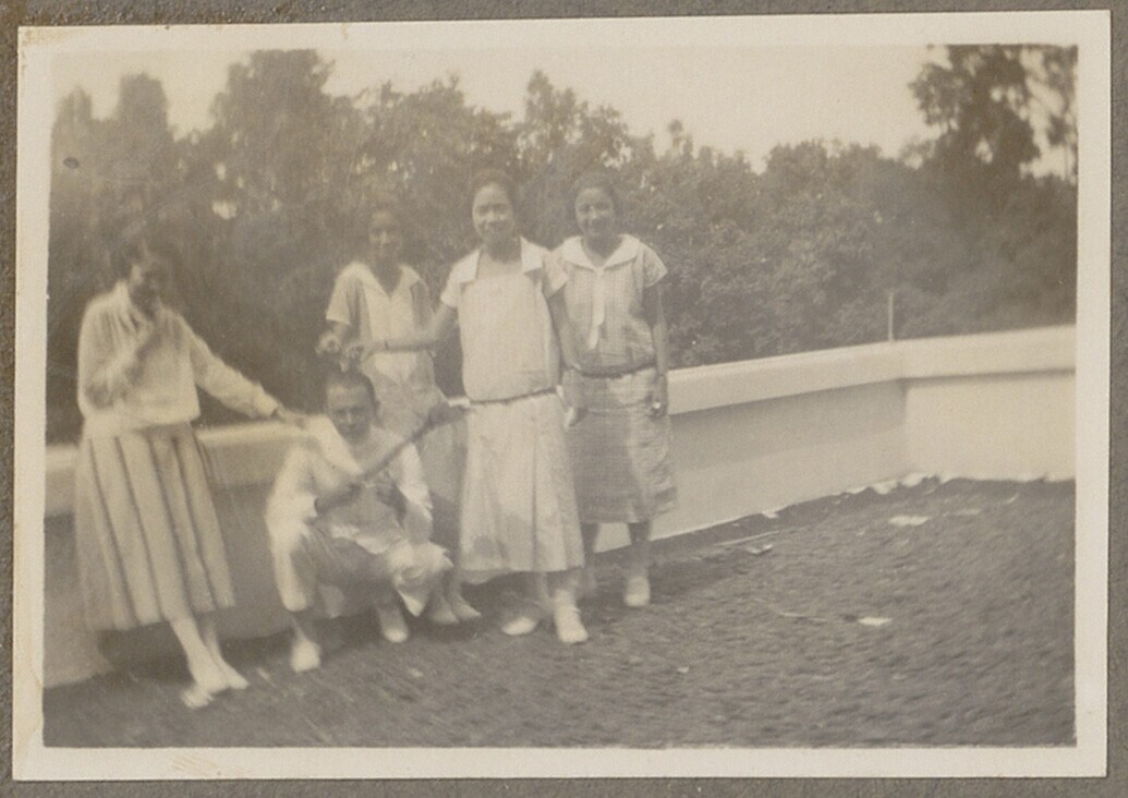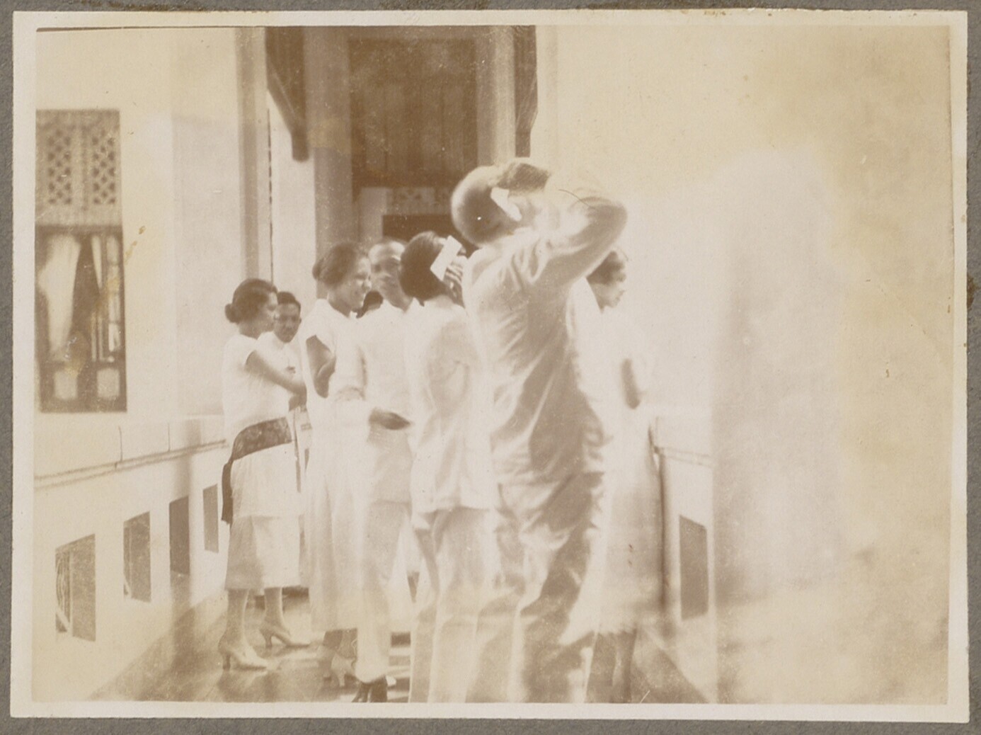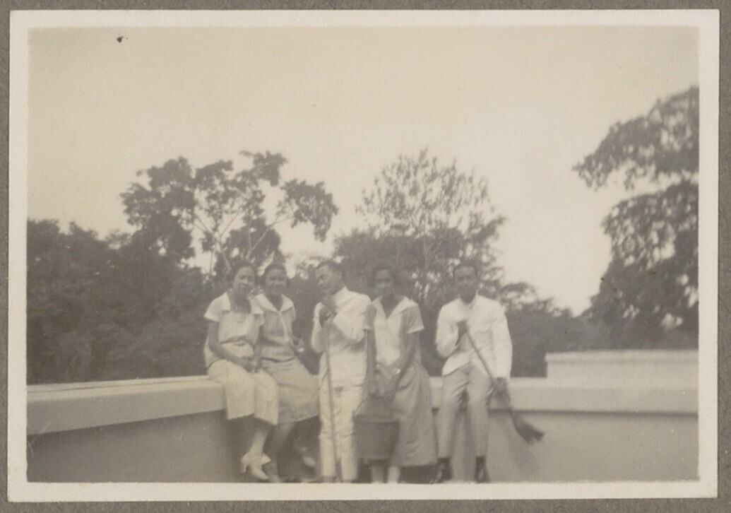 Portret van een gezelschap op een balkon