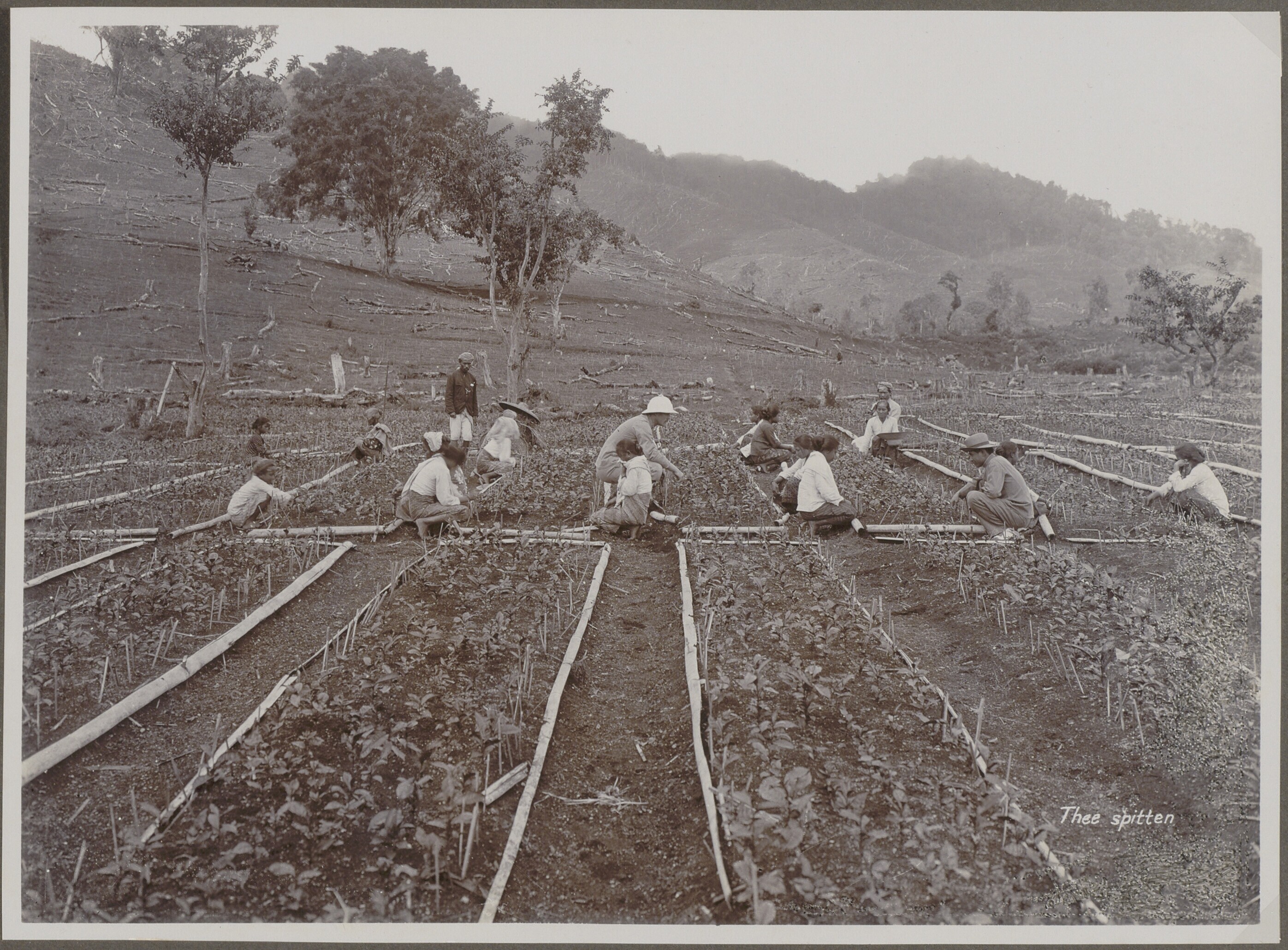 Een groep Javaanse arbeiders onder leiding Europese ...