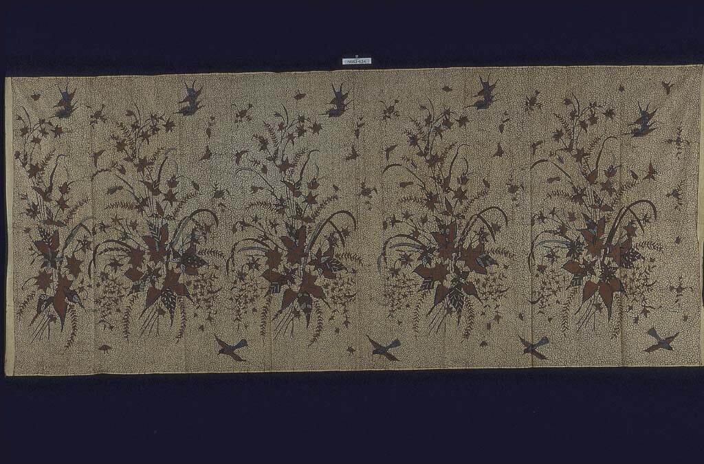 Kokerrok met pauwen op lange takken, en diagonale ba...