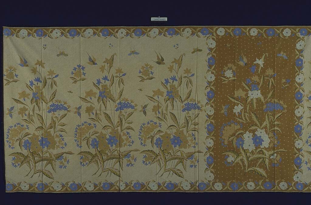 Kokerrok met boeketten, vogels en vlinders