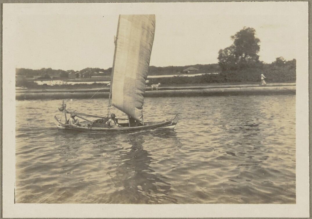 Vissersprauw op kanaal bij Pasar Ikan