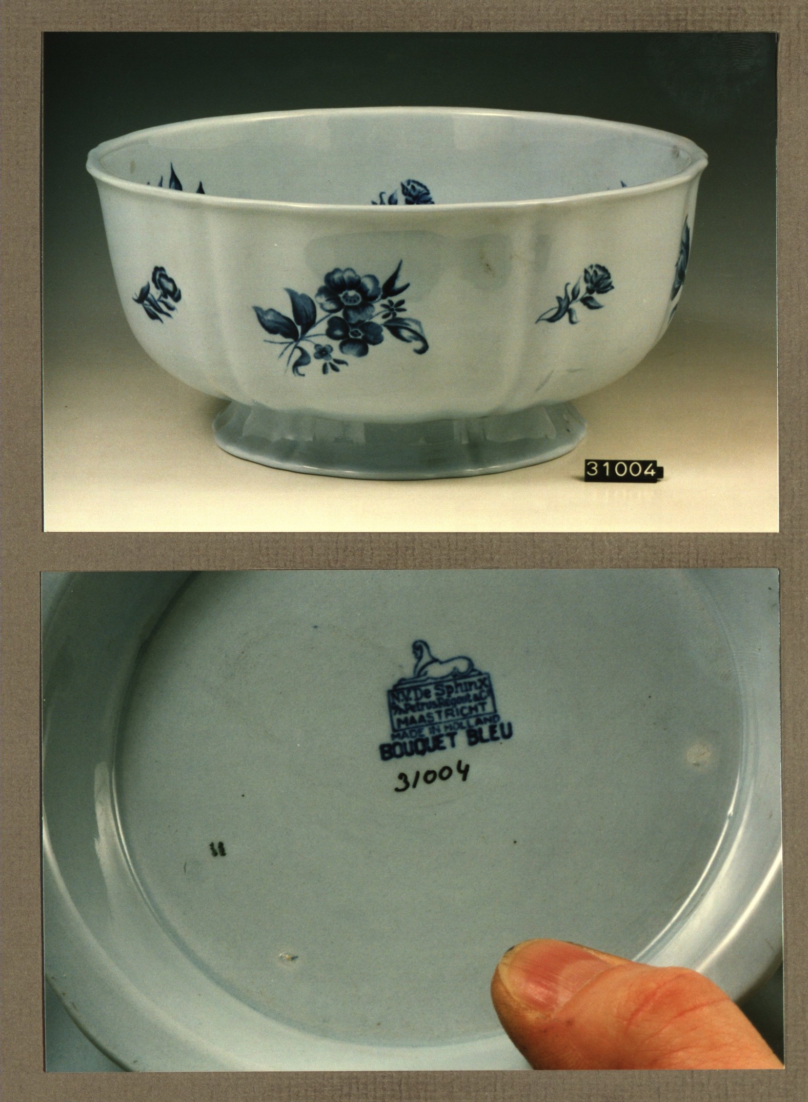 Schaal op voet, model Dominique met decor Bouquet bleu