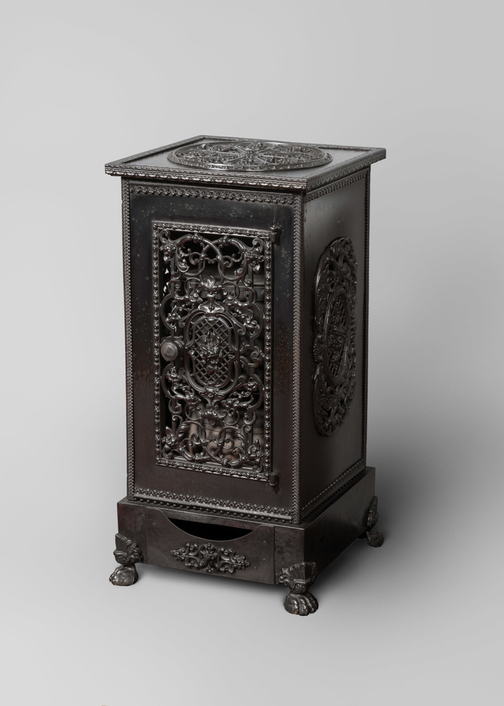 Gietijzeren kachel met opengewerkte panelen