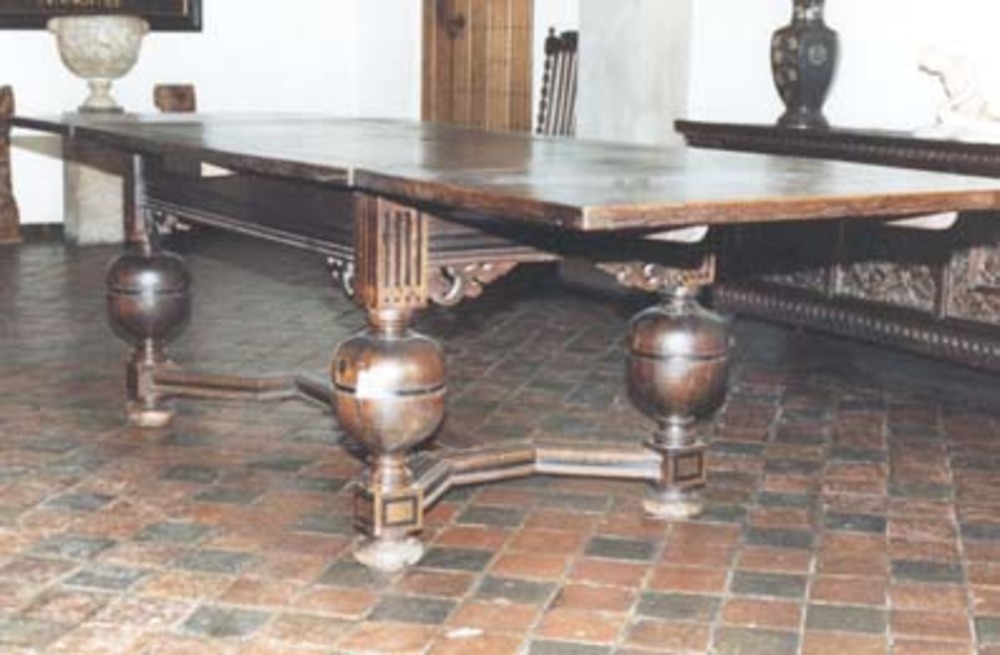 Uitklaptafel "Balpoottafel" eiken- met ebbenhout inl...