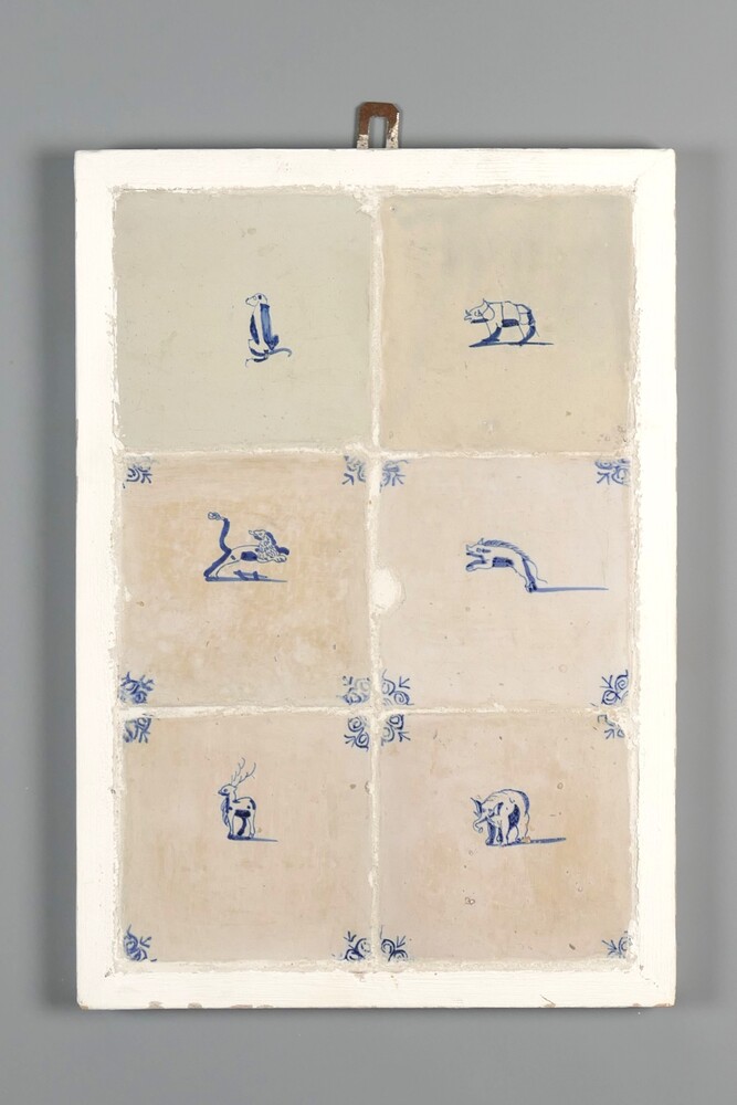 Tegeltableau van keramiek, met tinglazuur, voorstell...