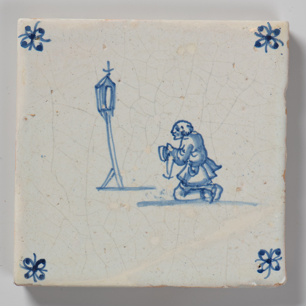 tegel van aardewerk met tinglazuur, voorstellende: b...