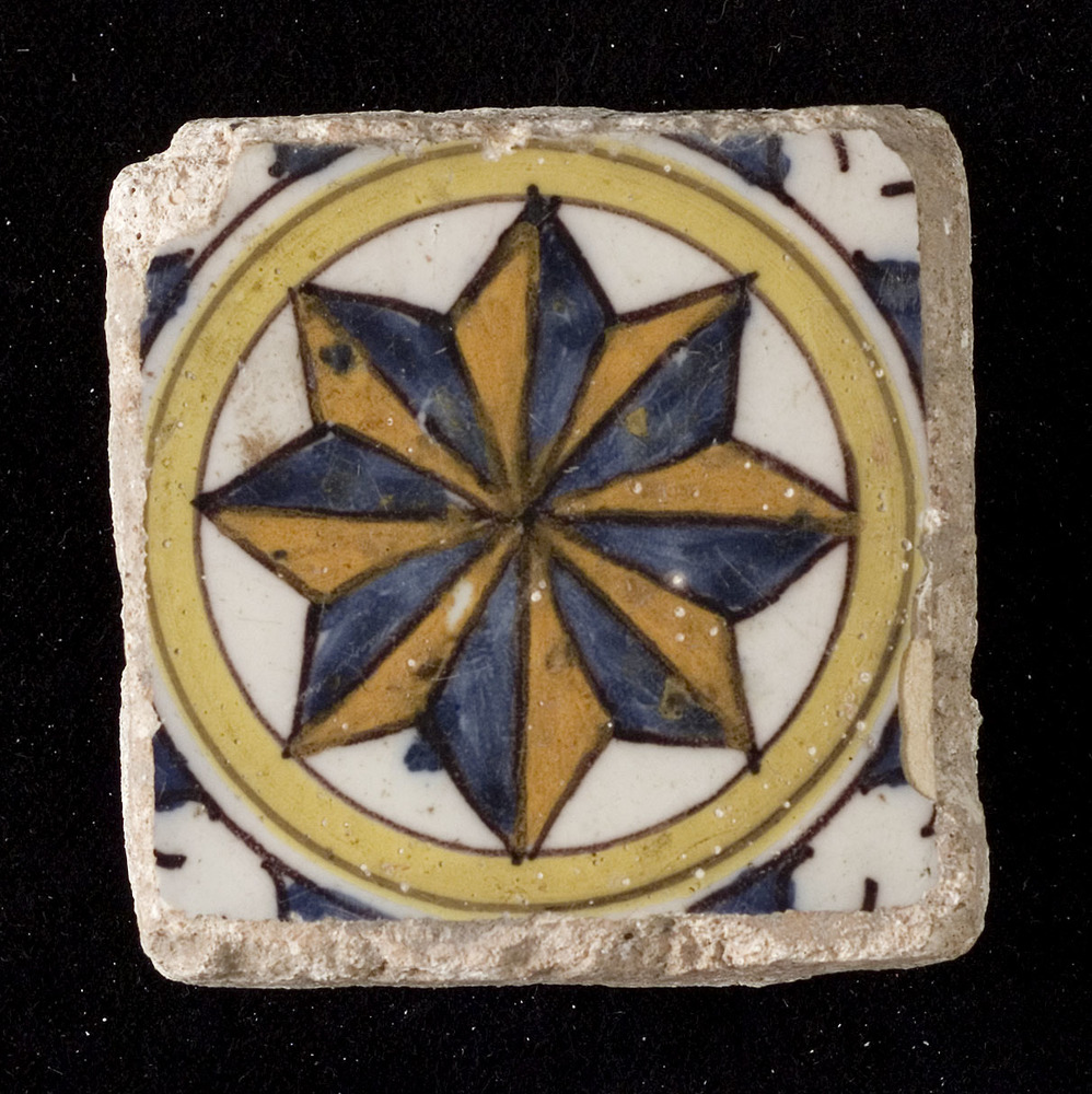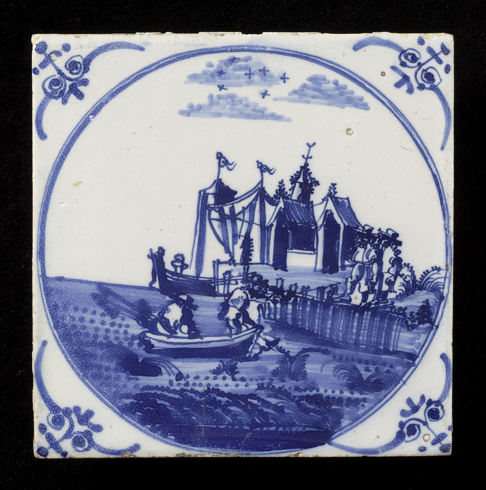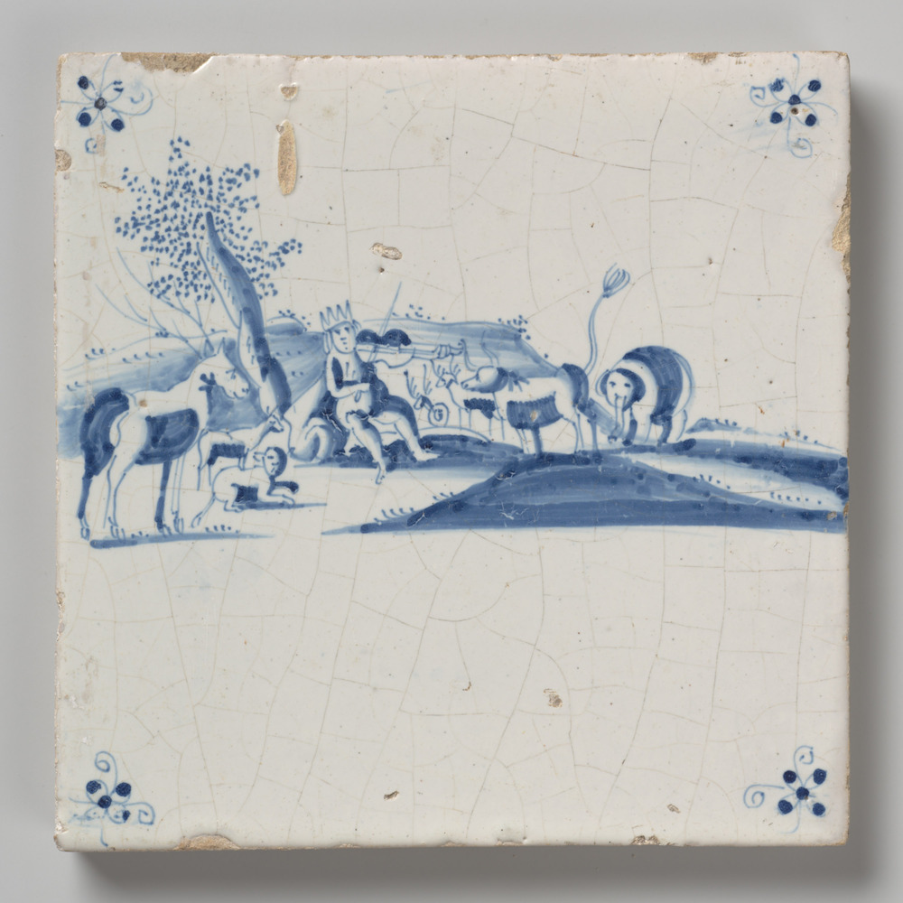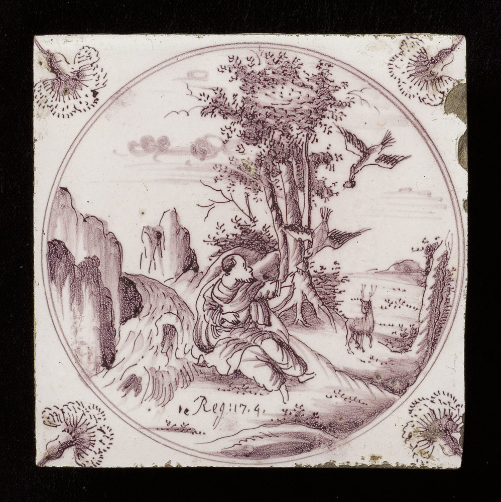 Tegel van keramiek met tinglazuur, voorstellende: El...