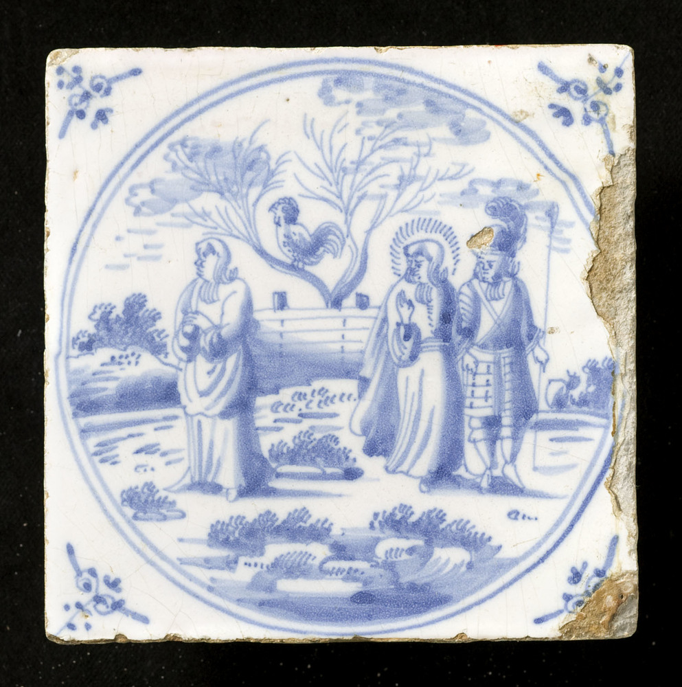 tegel van aardewerk met tinglazuur, voorstellende: O...