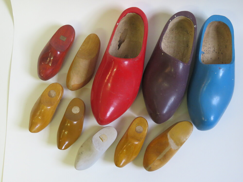 klompen in diverse kleuren als modellen voor verniss...