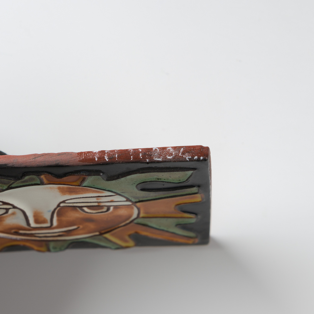 Tegel in cloisonné-techniek, met voorstelling: Zon m...