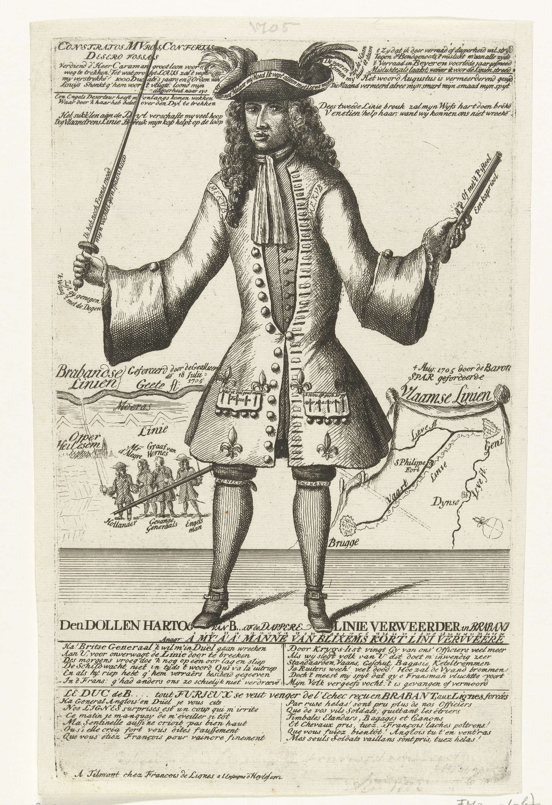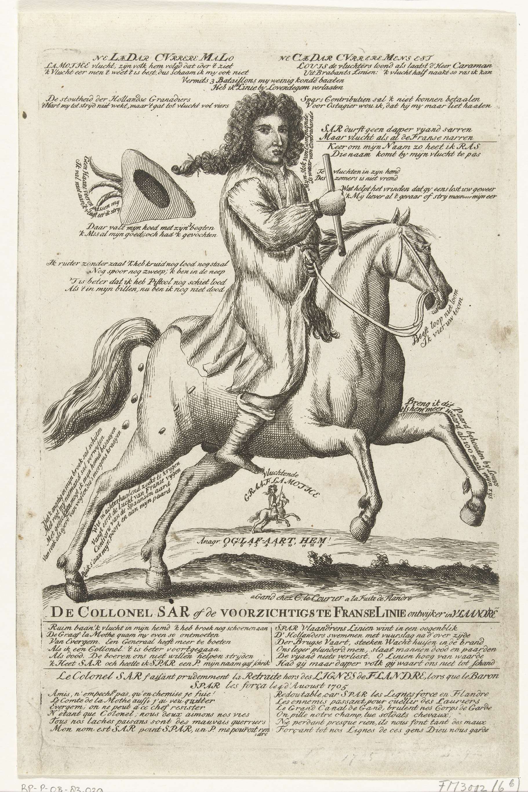 Spotprent op de vluchtende kolonel Sar, 1705
