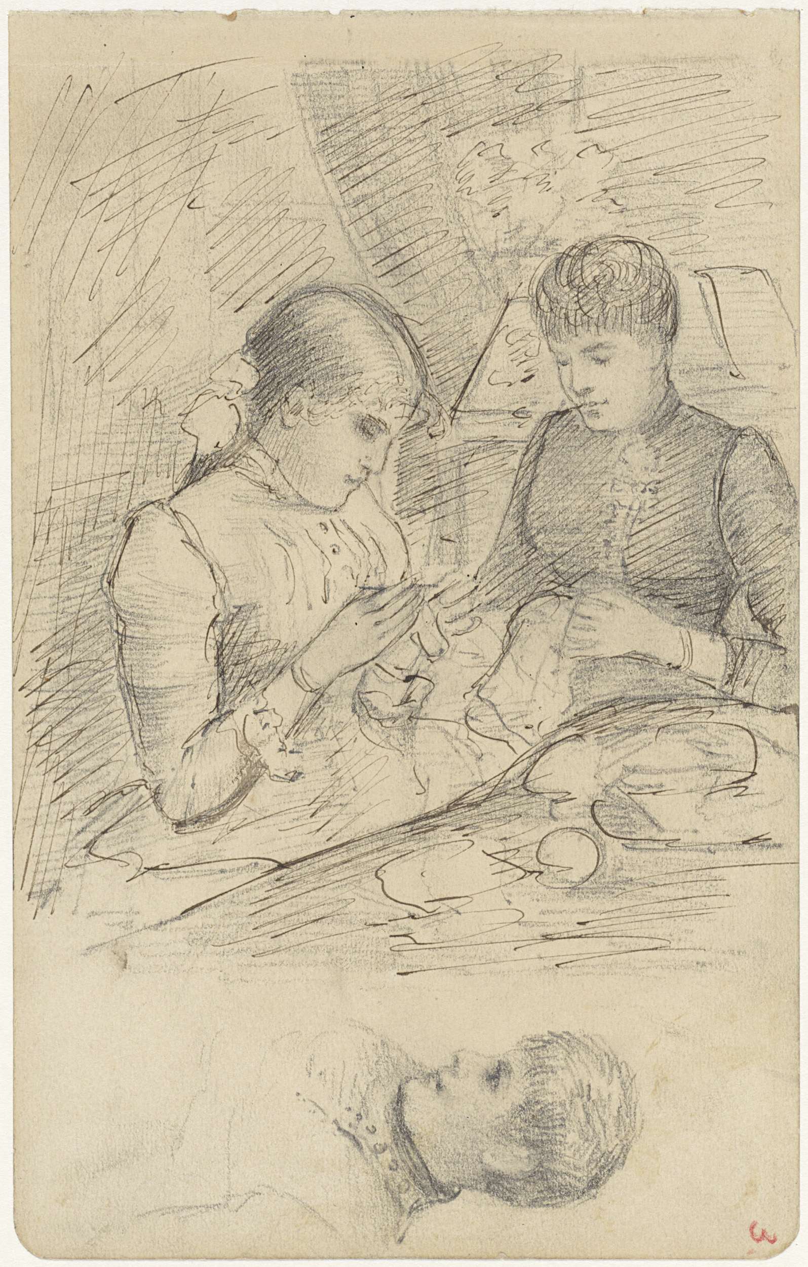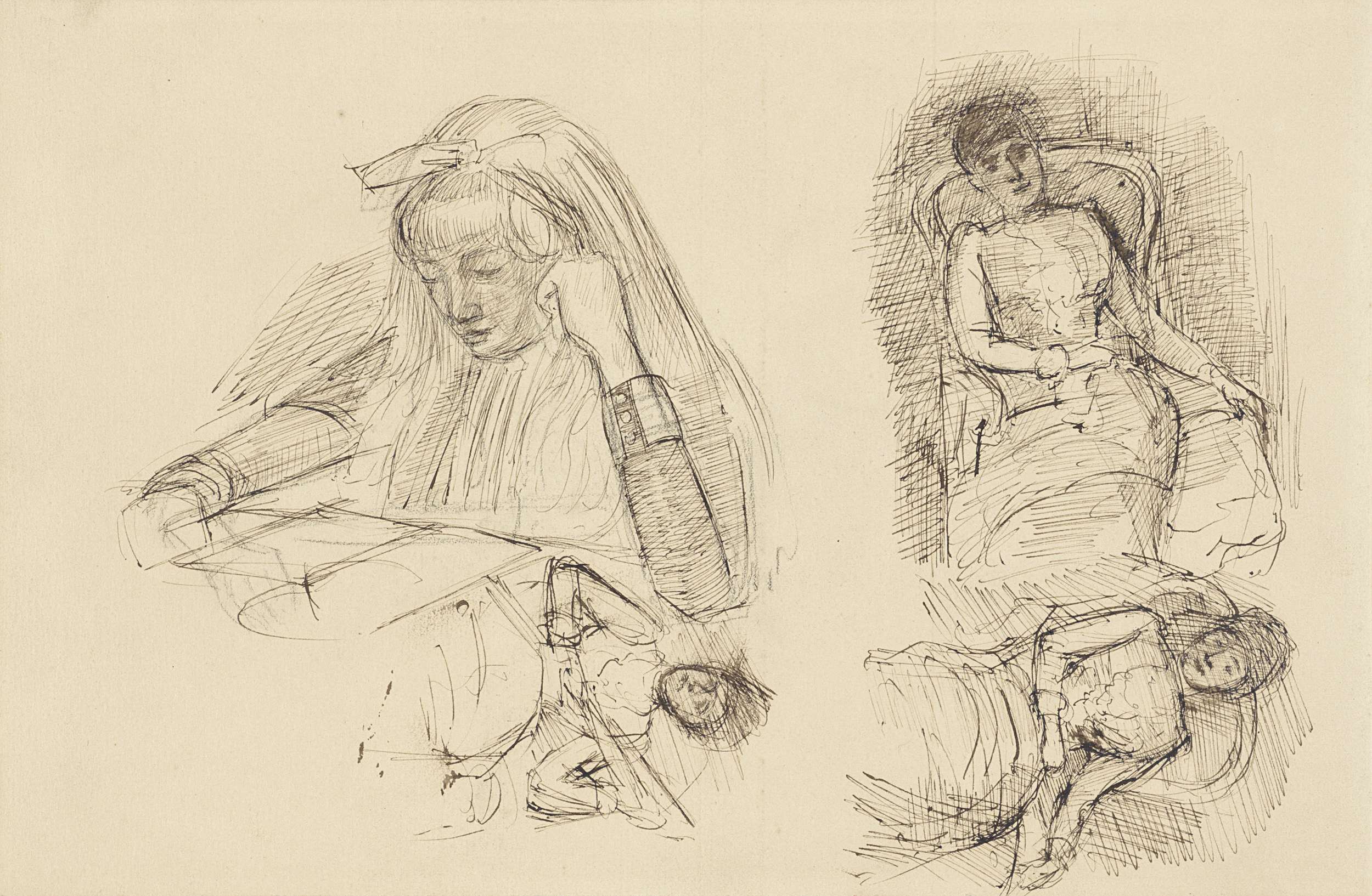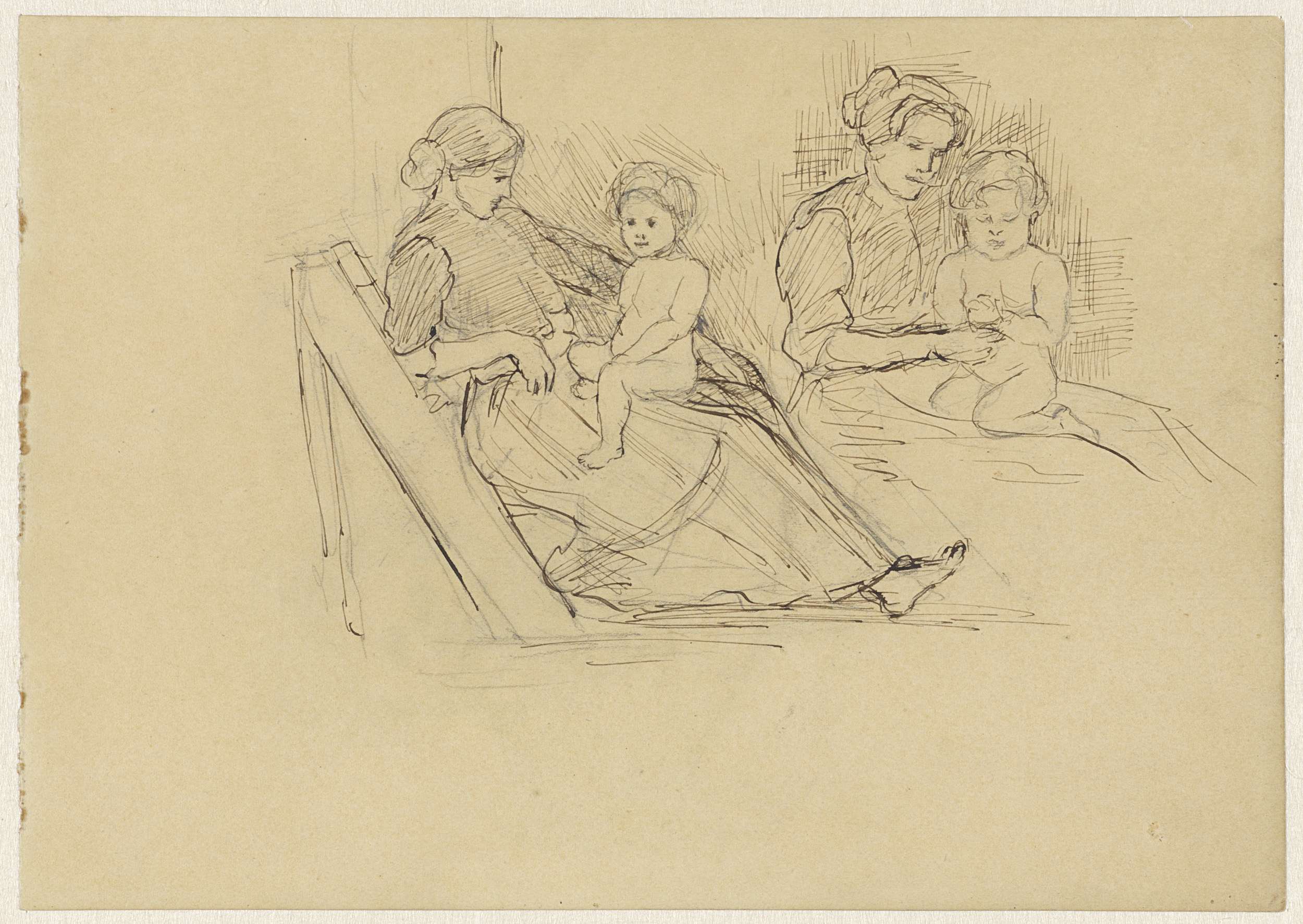 Twee studies van een vrouw met kind