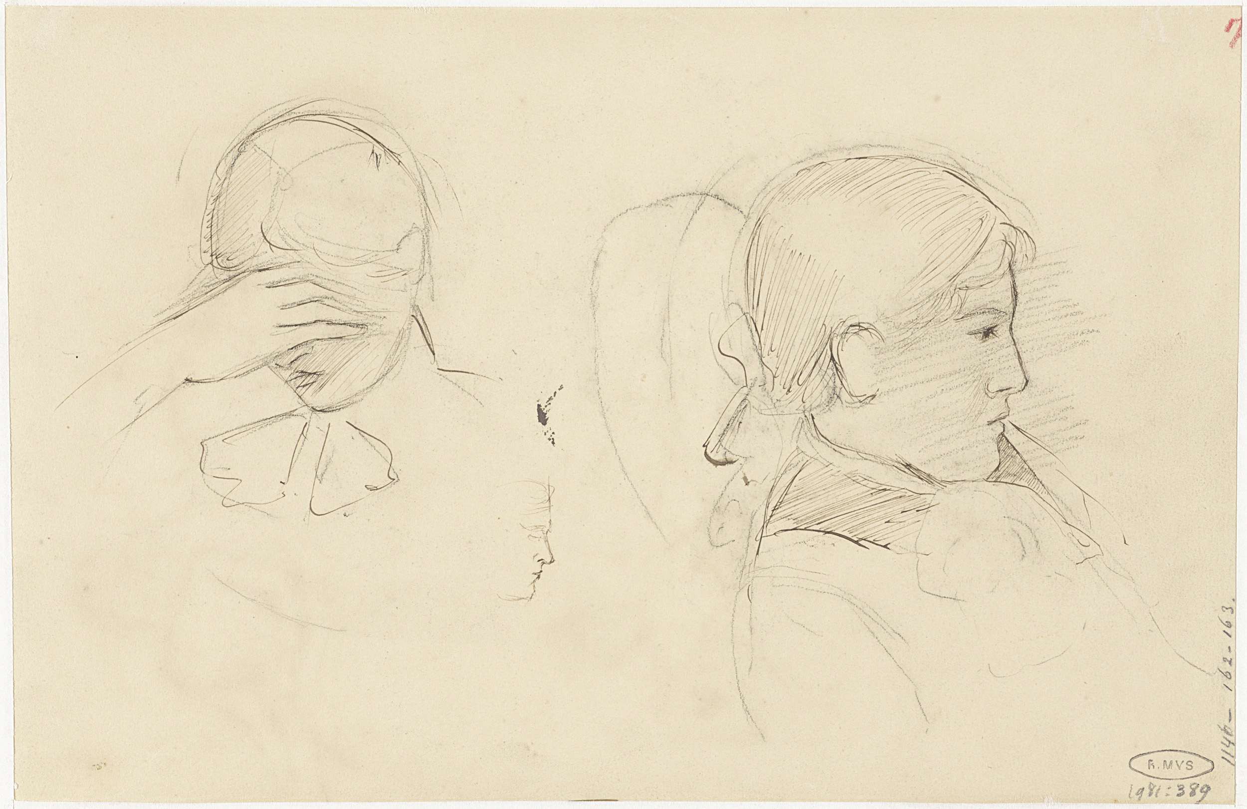 Vier schetsen van kinderhoofden