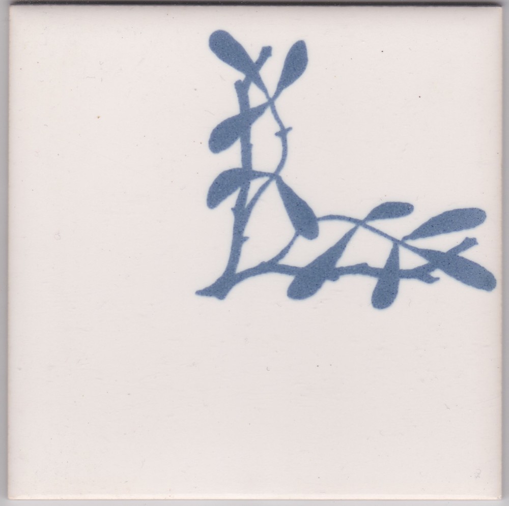 Tegel in zeefdruk, met voorstelling: decor Rowan, co...