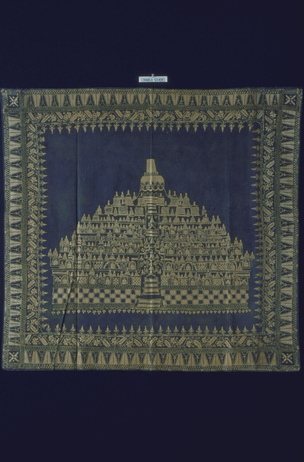 Katoenen muurversiering met de Borobudur en een flor...