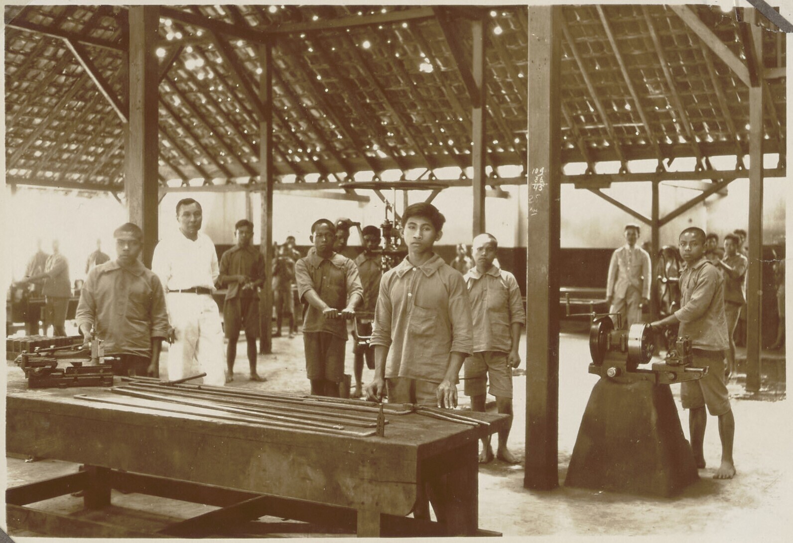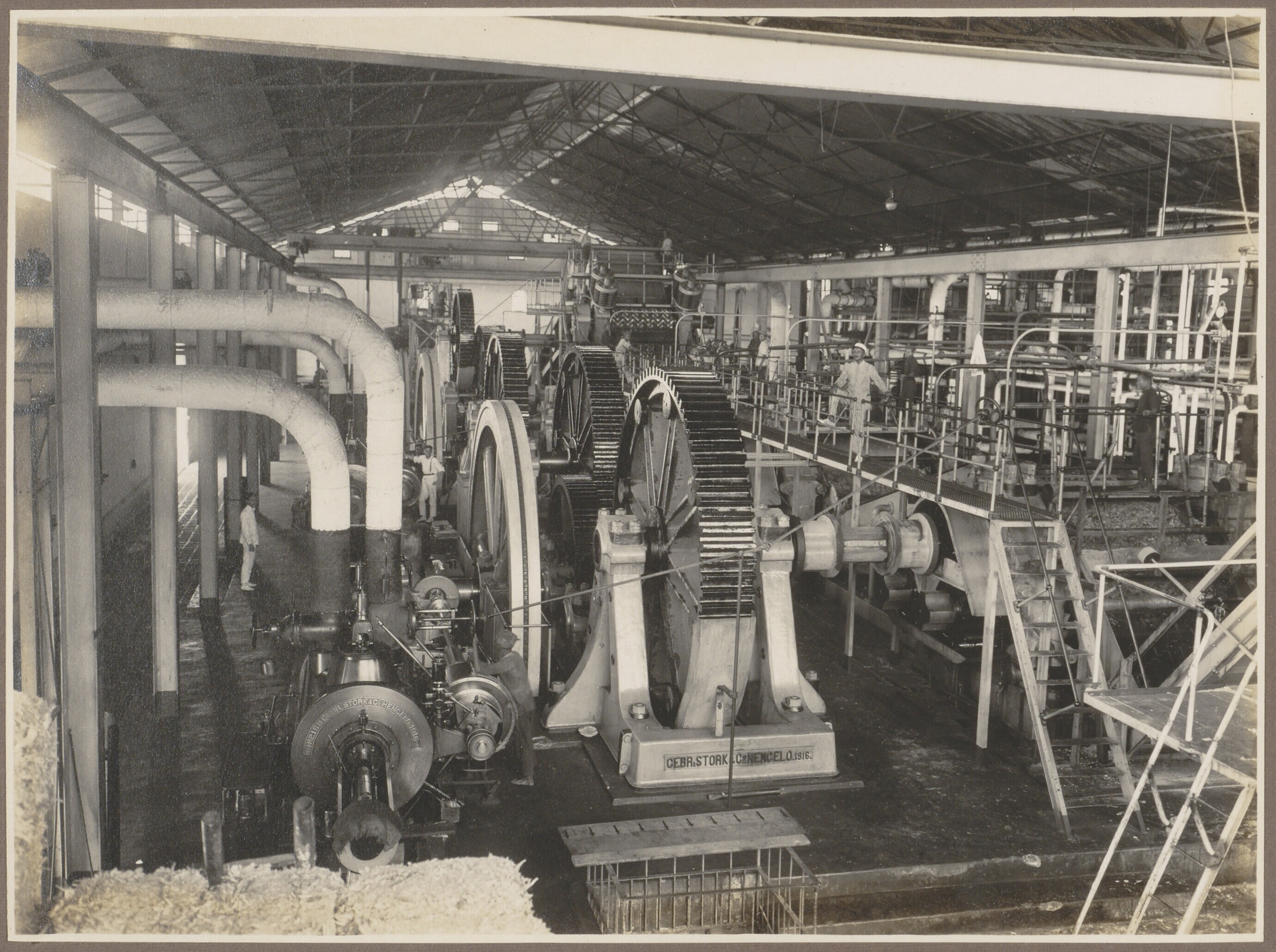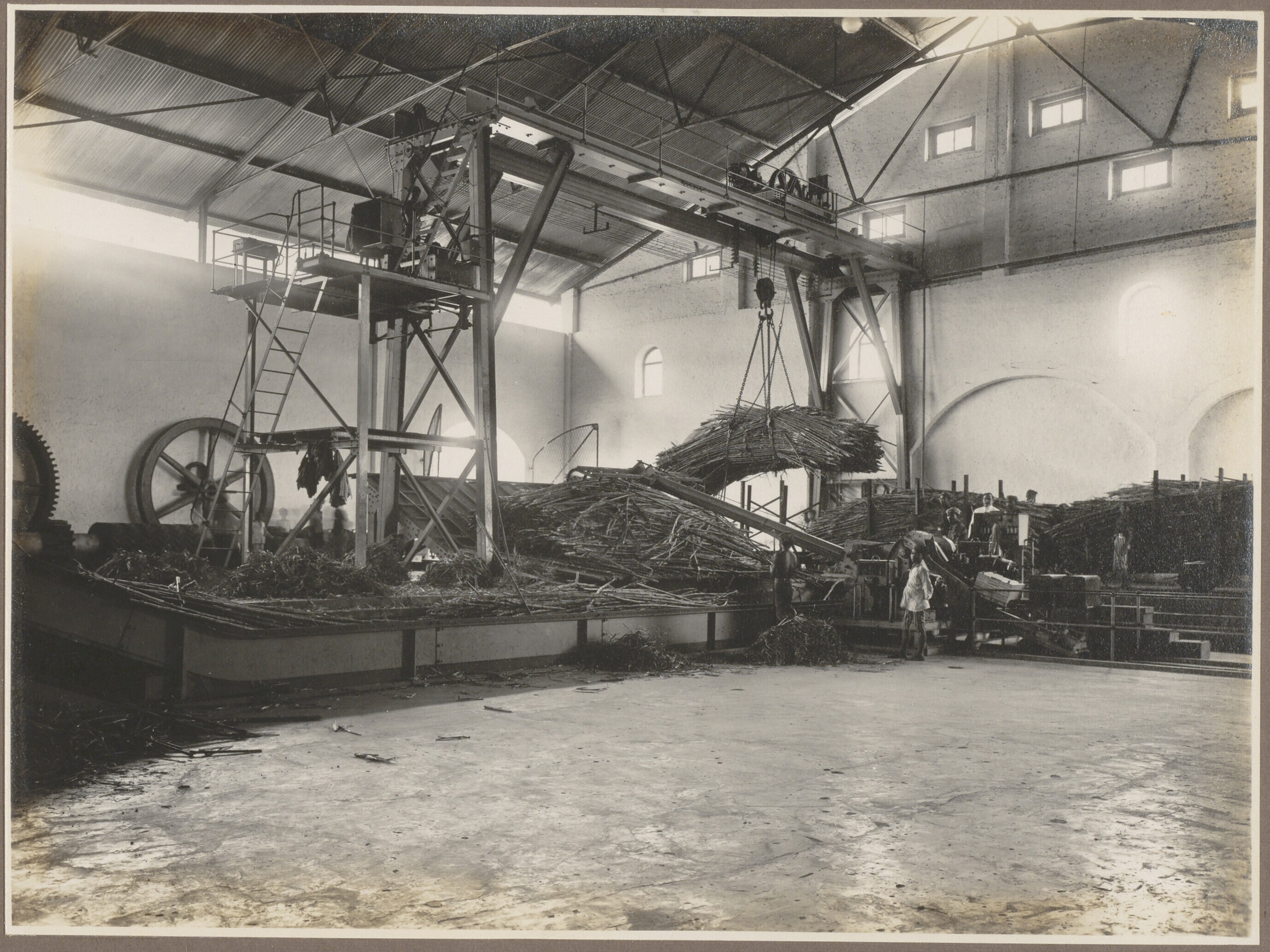 Binnenkant van een suikerfabriek bij Djatibarang en ...