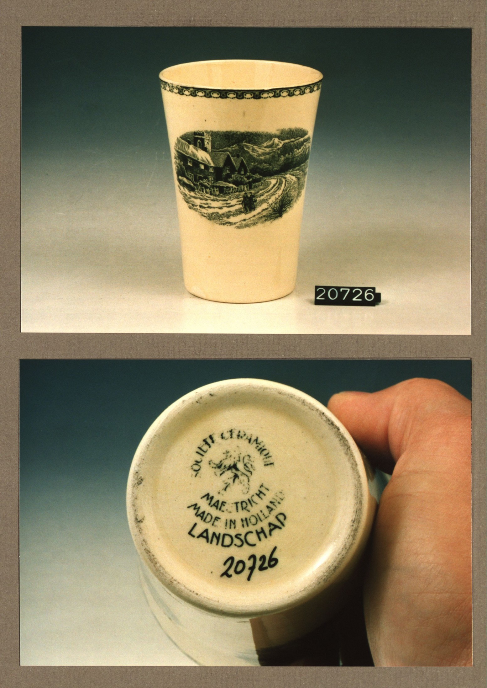 Beker, model Effen met decor Landschap
