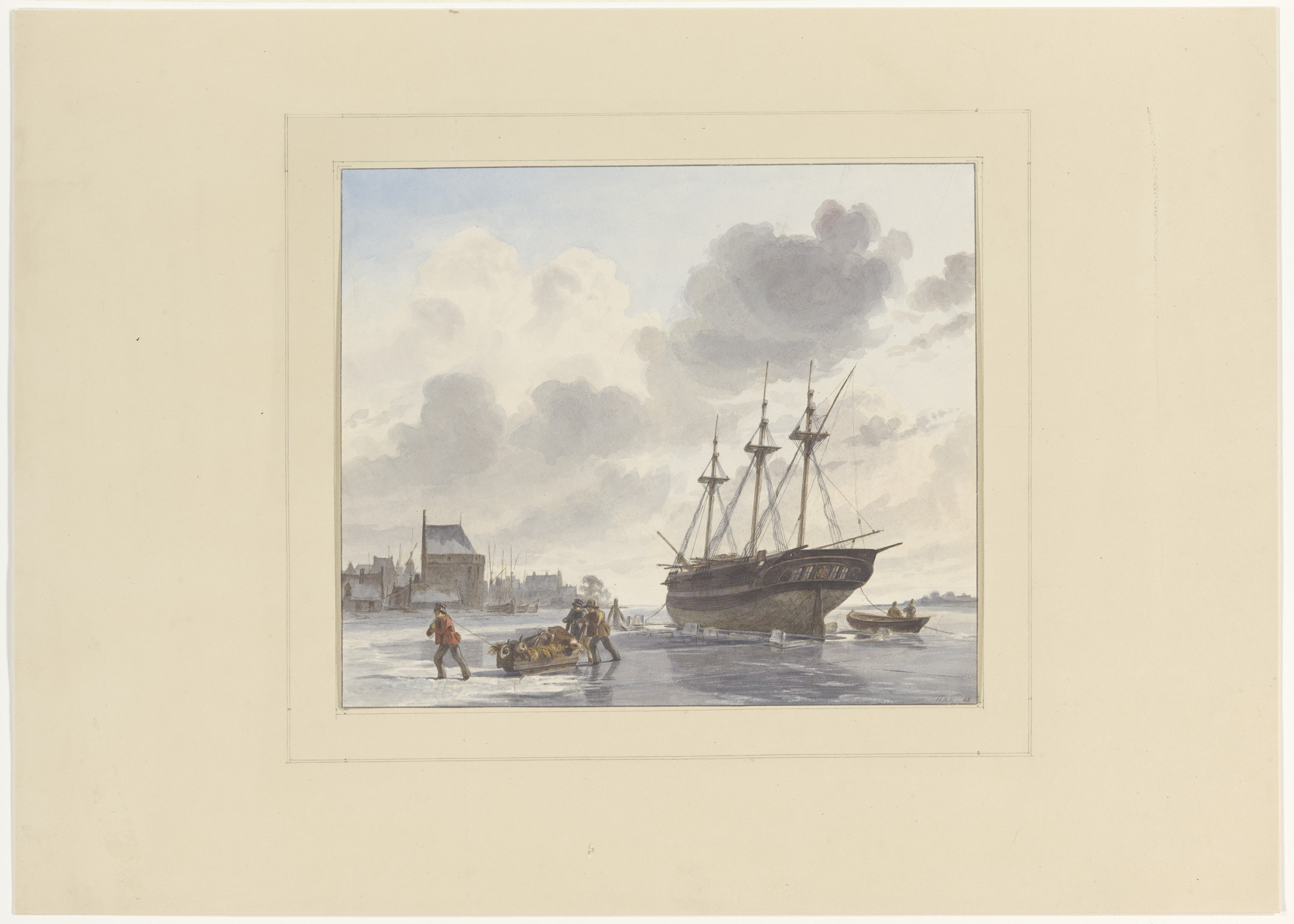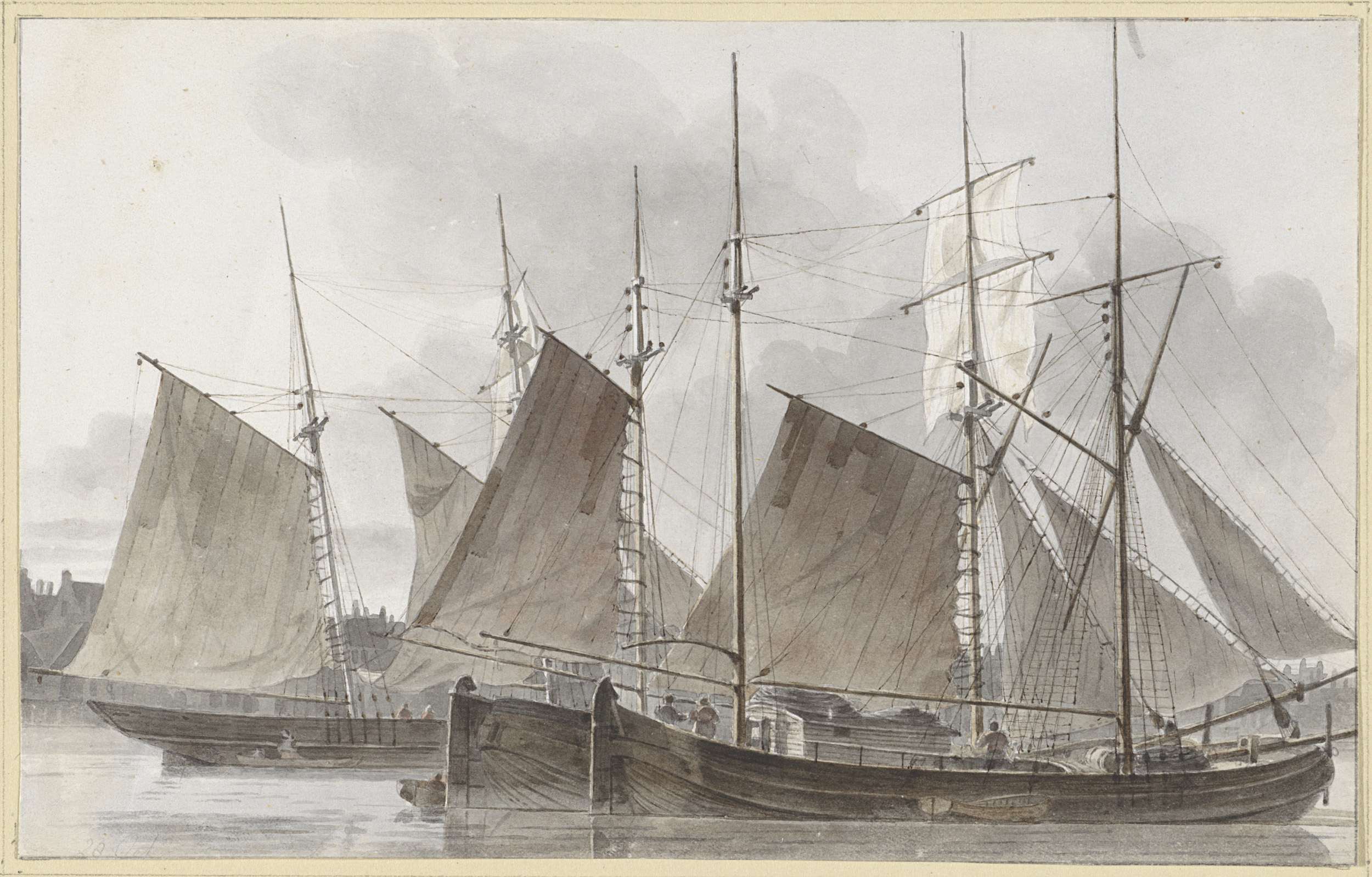 Driemaster onder noodtuig, een haven binnenlopend me...
