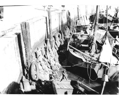 Haven van Hoorn, 1948. Zeer lage waterstand op het I...