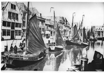 Haven van Enkhuizen. Vooraan hangen een paar palingk...