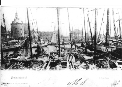 Buitenhaven van Enkhuizen. Her en der drijven garnal...
