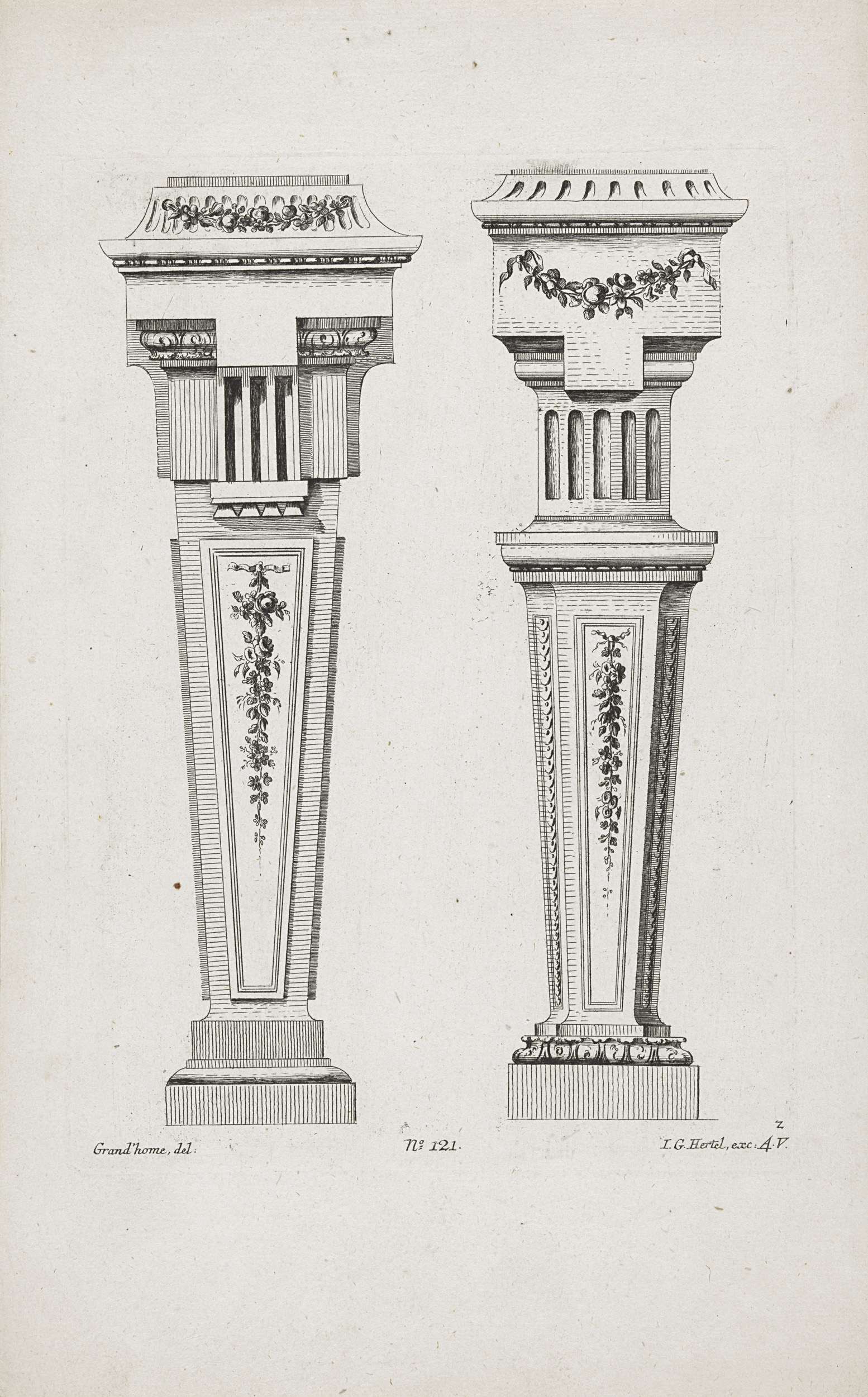 Twee voetstukken met guirlandes