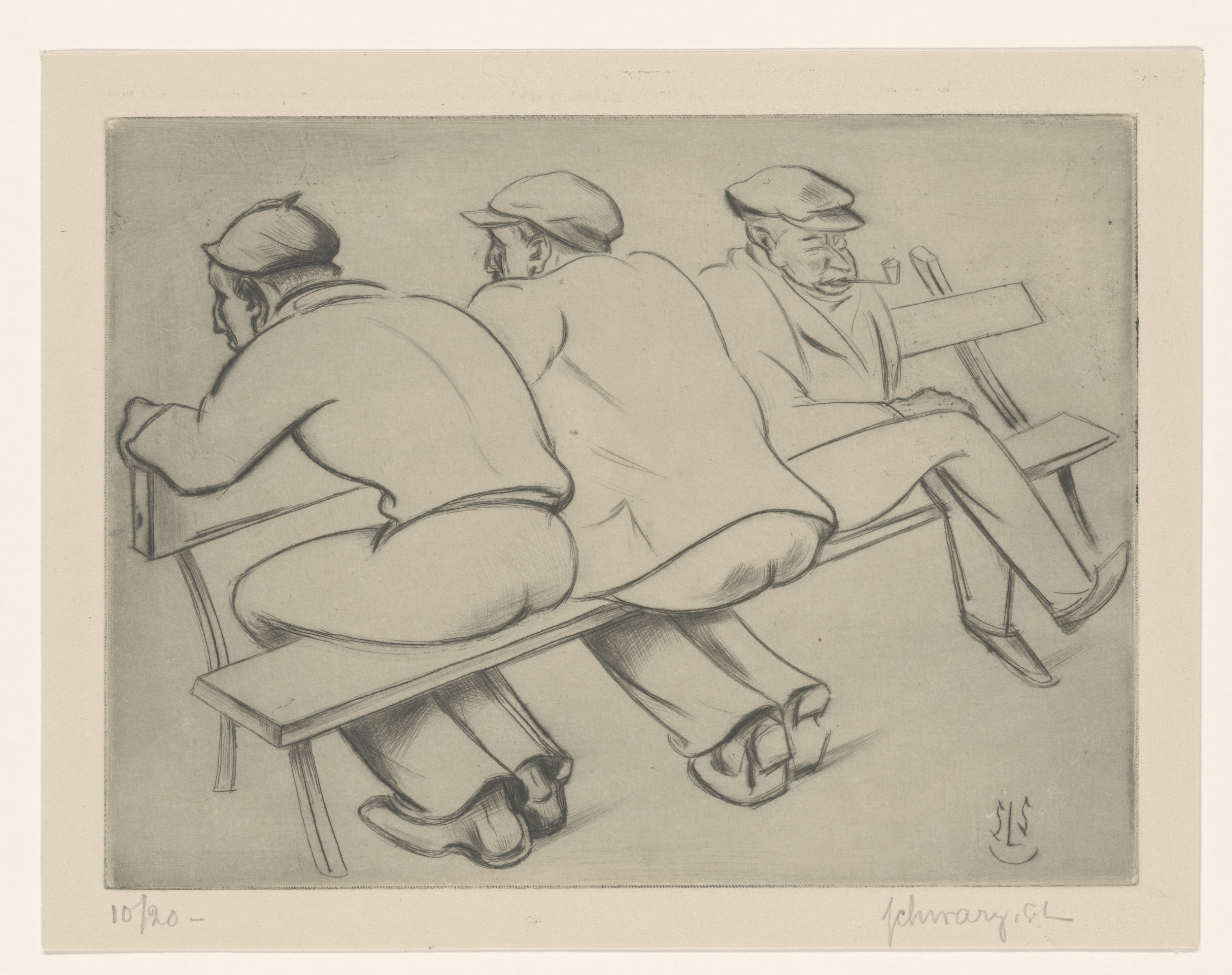 Drie mannen op een bank