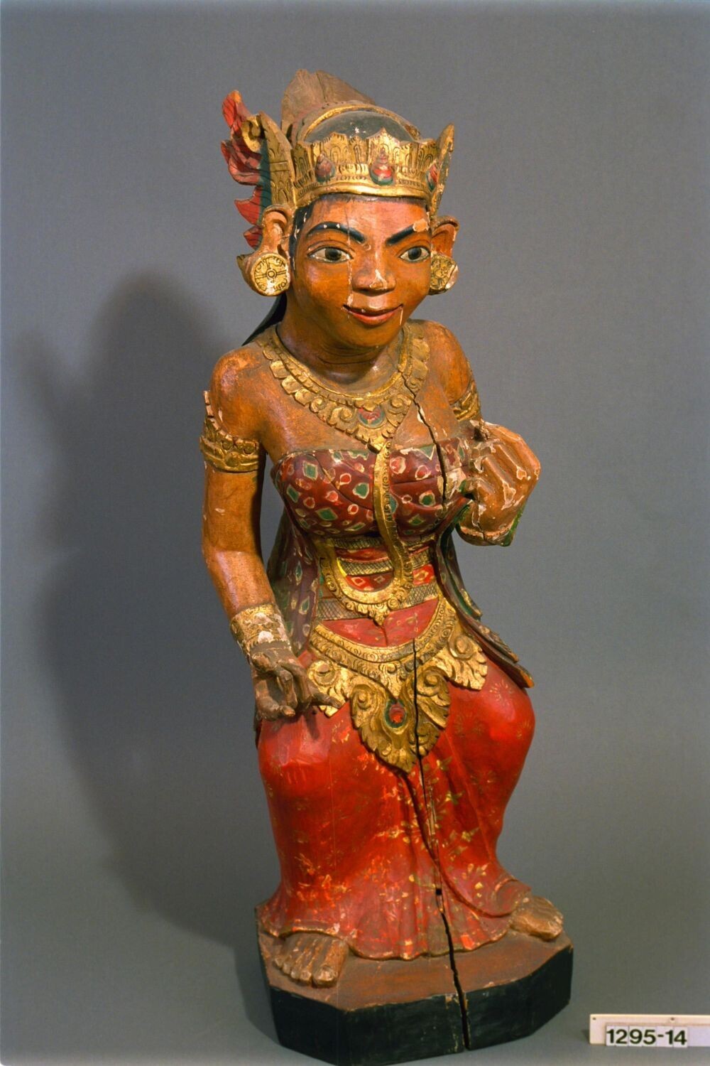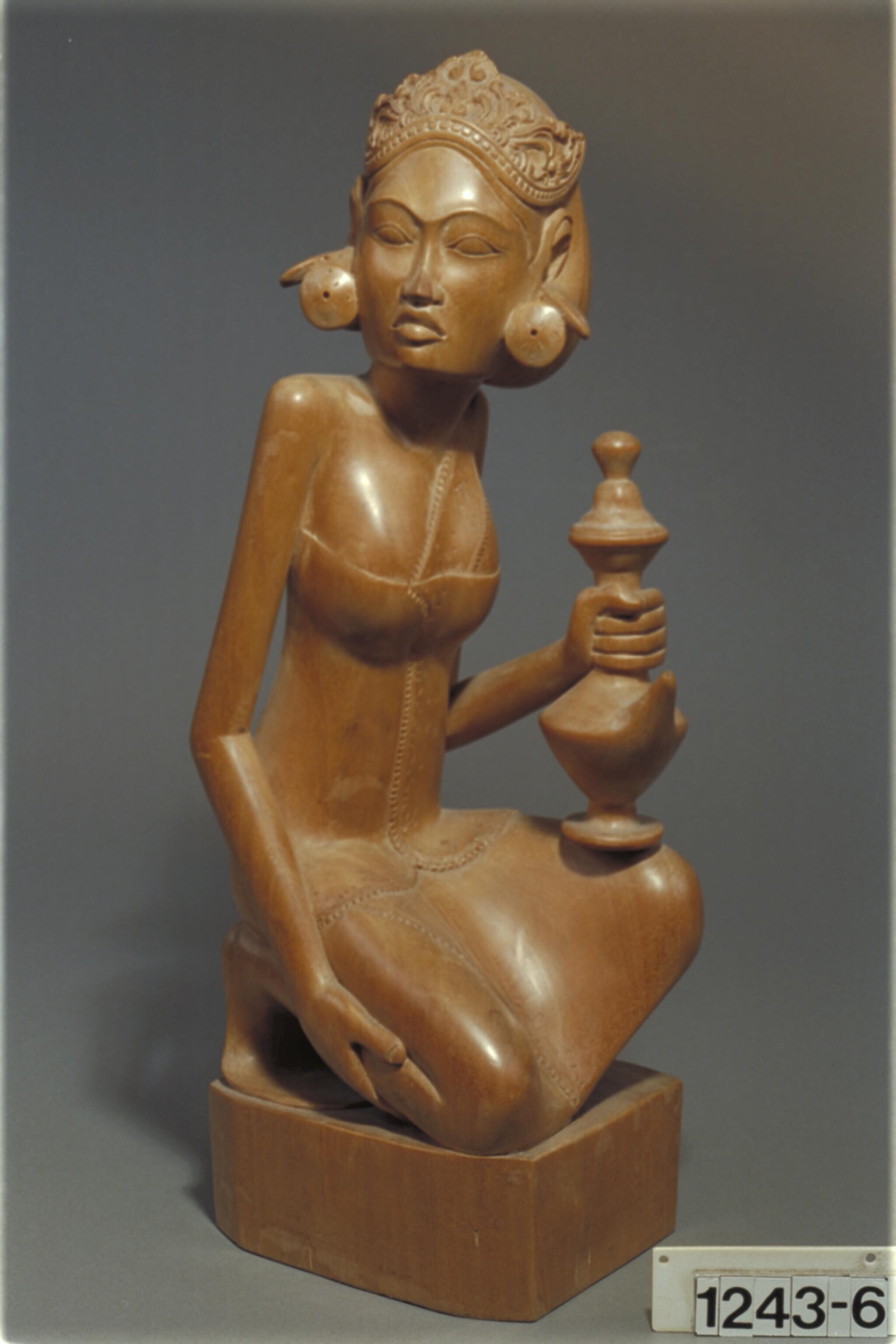 Houten beeld van een aanzienlijke vrouw