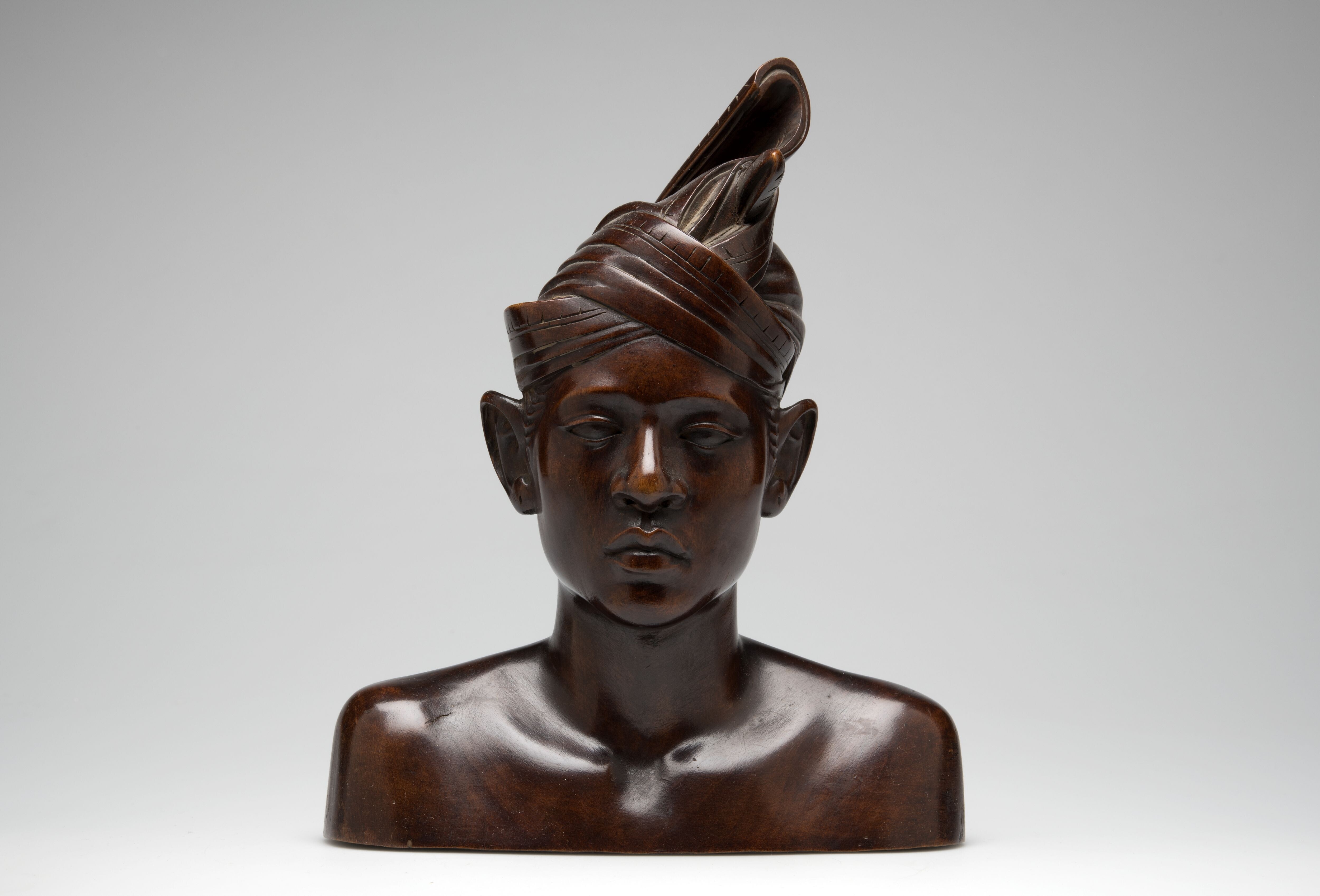 Houten buste van een jonge man