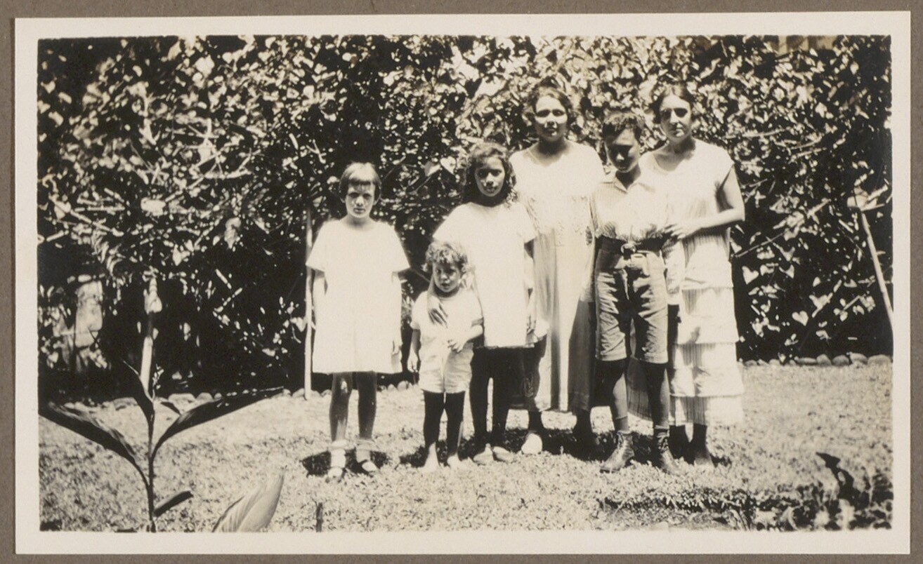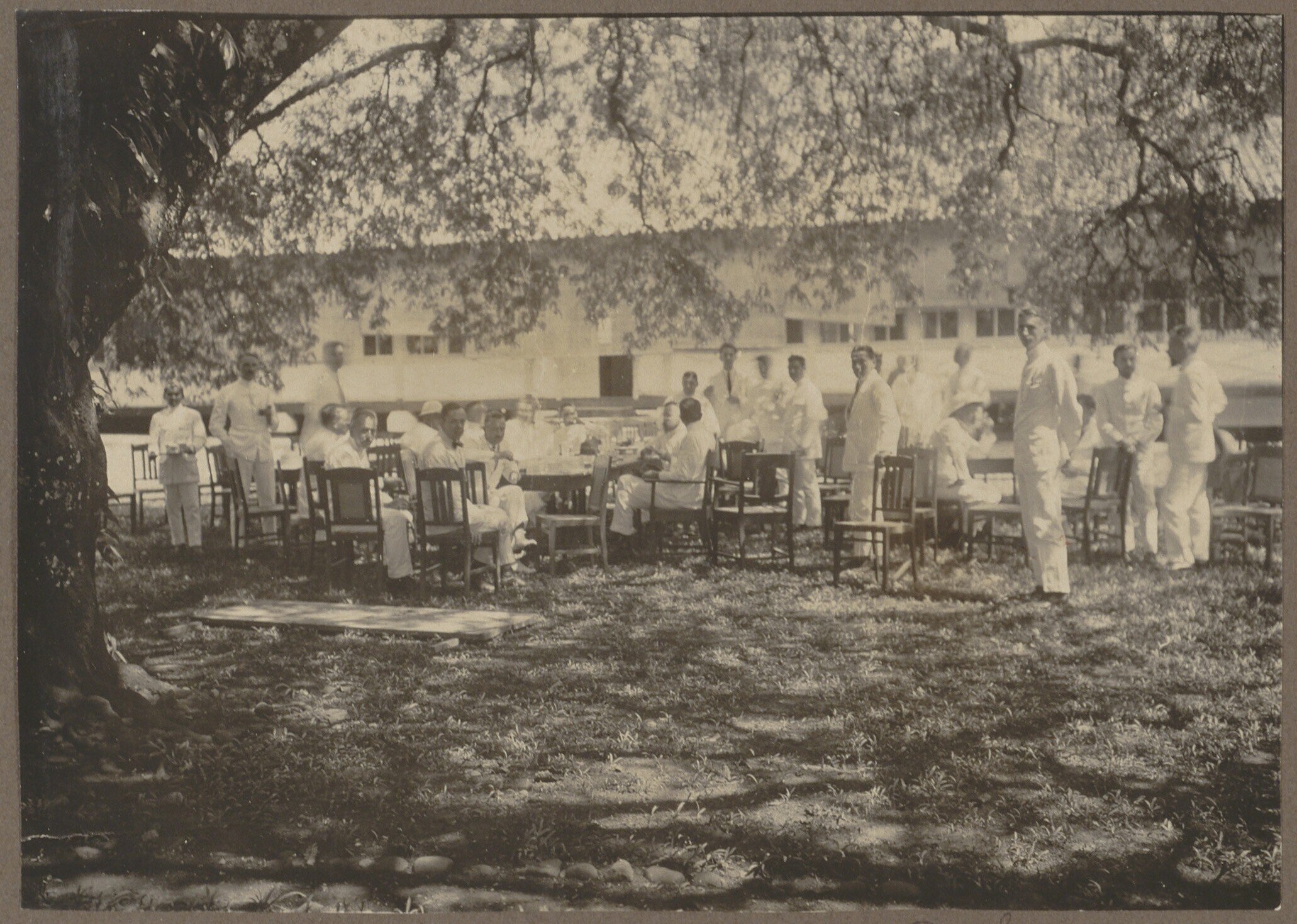 Portret van een gezelschap in de tuin