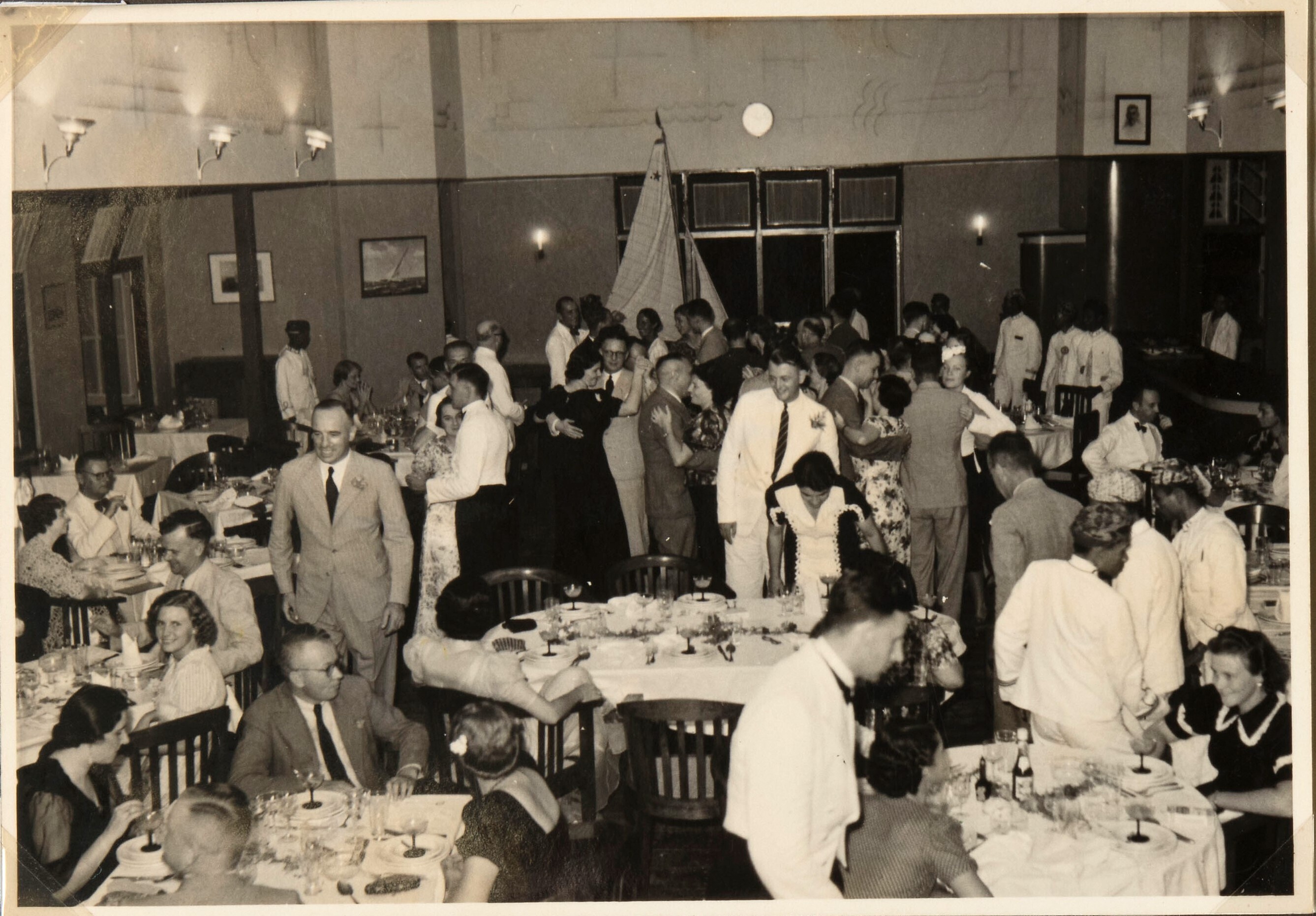 Diner-dansant van Europese mannen en vrouwen in zaal...