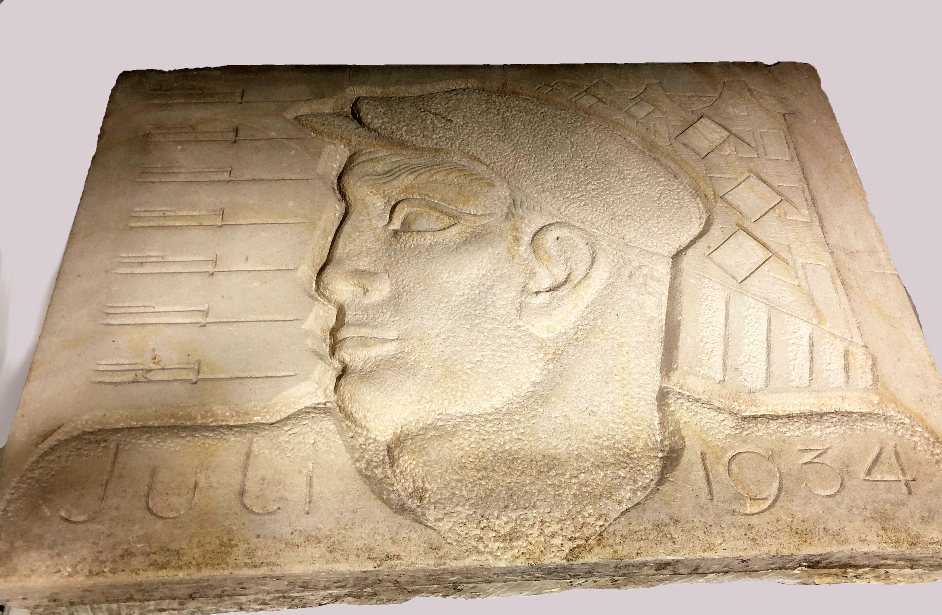 Fragment van beeldhouwwerk fronton houten schouwburg...